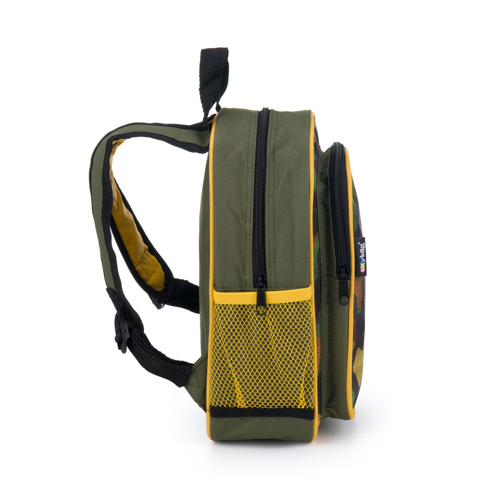 Smaller backpack suitable for pre-school aged children for leisure activities. The backpack has one large pocket, a smaller pocket for snacks and side pockets for drinking bottle. Ideal for children 3 to 6 years old.
