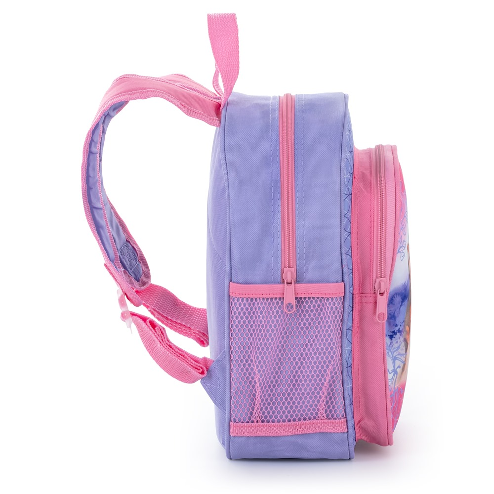 Smaller backpack suitable for pre-school aged children for leisure activities. The backpack has one large pocket, a smaller pocket for snack and side pockets for drinking bottle. Ideal for children 3 to 6 years old.
