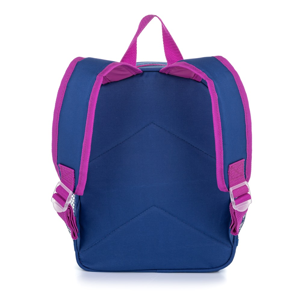 Smaller backpack suitable for pre-school aged children for leisure activities. The backpack has one large pocket, a smaller pocket for snacks and side pockets for drinking bottle. Ideal for children 3 to 6 years old.