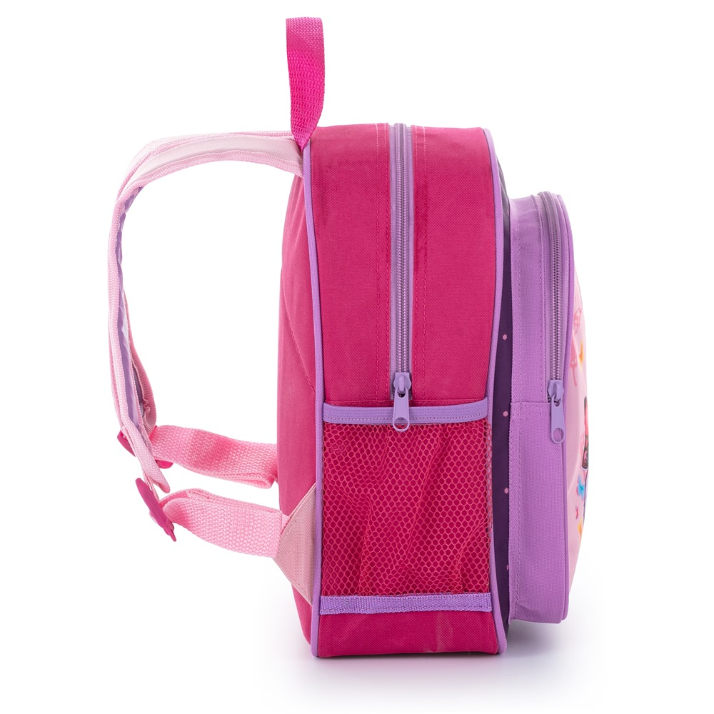 Smaller backpack suitable for pre-school aged children for leisure activities. The backpack has one large pocket, a smaller pocket for snacks and side pockets for drinking bottle. Ideal for children 3 to 6 years old.