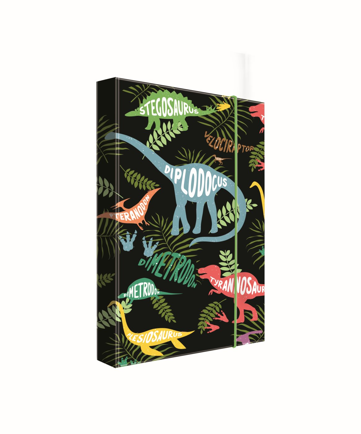 Heftbox for exercise books in A4 Jumbo format. Ideal for storing books, papers and other school supplies. Durable material - laminate, protects against damage. Rubber band closing. Back width 4 cm.