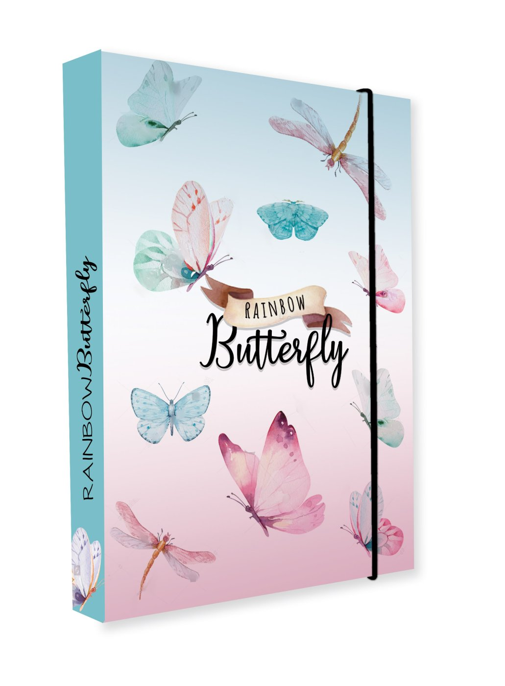 Heftbox for exercise books in A4 format. Ideal for storing books, papers and other school supplies. Durable material - laminate, protects against damage. Rubber band closing. Back width 3 cm.