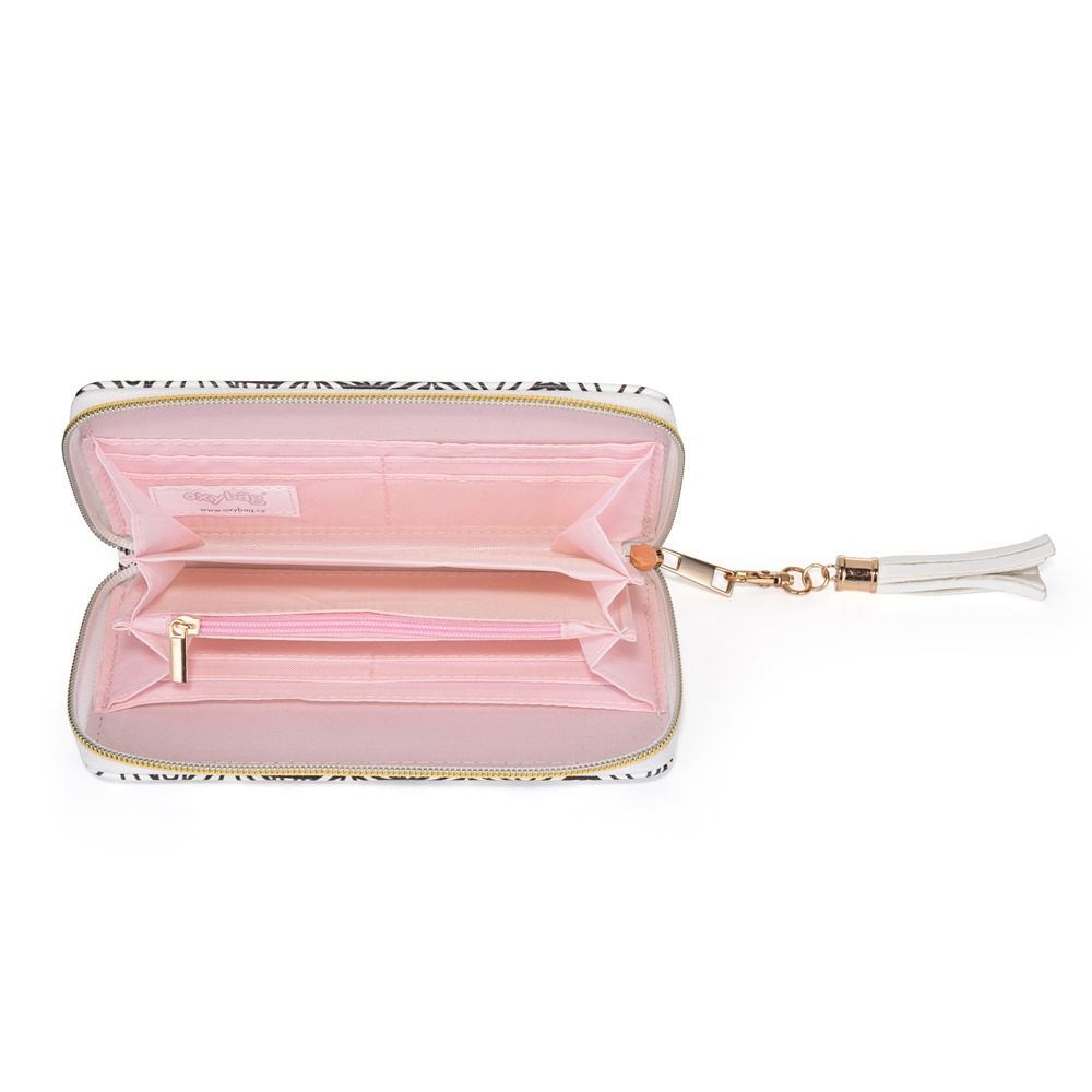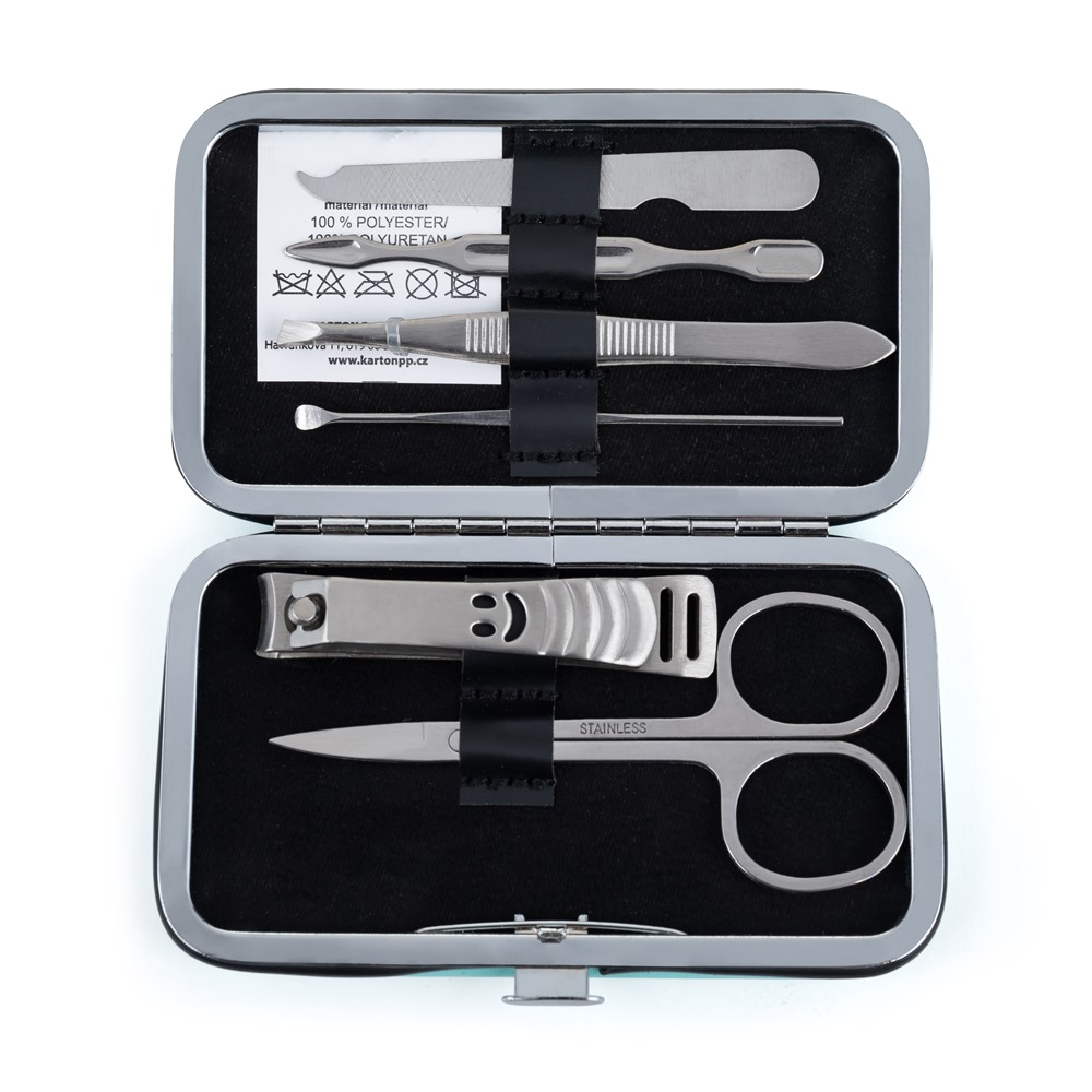 Dárková sada obsahuje velkou peněženku, kulatou kosmetickou tašku, manikúrní set a zrcátko.