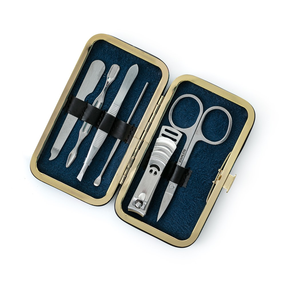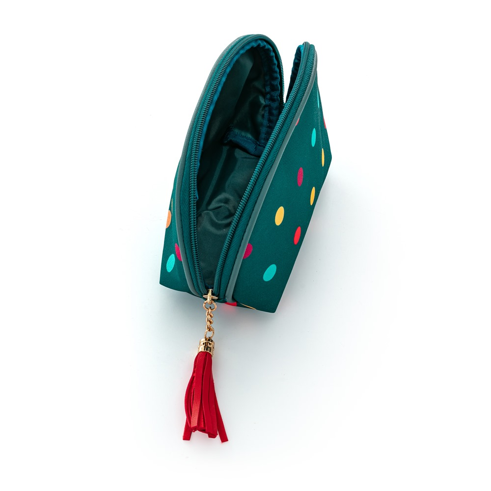 Dárková sada obsahuje velkou peněženku, kulatou kosmetickou tašku, manikúrní set a zrcátko.