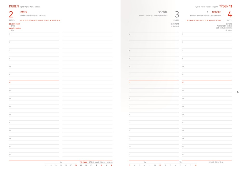 -dny a měsíce v 5 jazycích (CZ, SK, EN, DE, RU)
