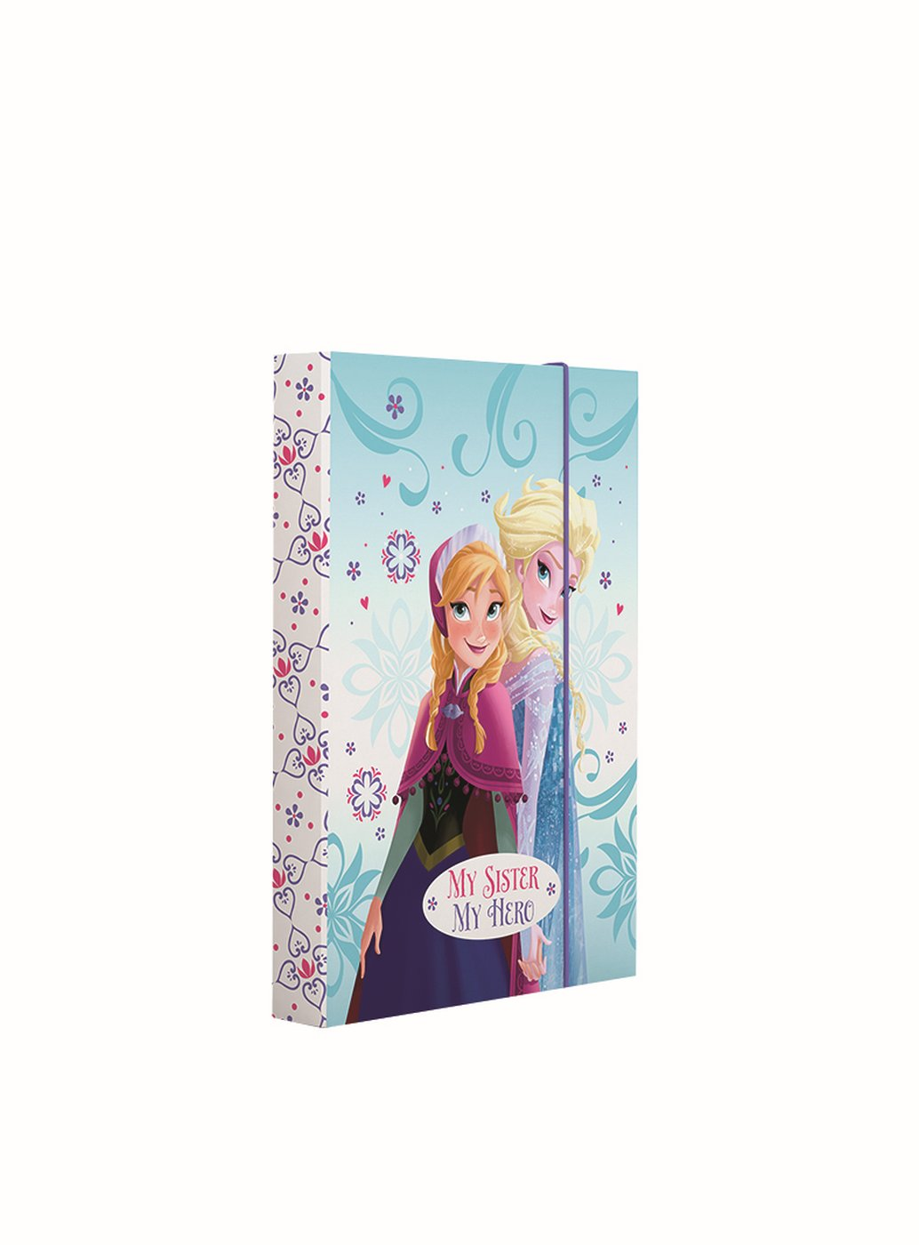 Heftbox for exercise books in A4 format. Ideal for storing books, papers and other school supplies. Durable material - laminate, protects against damage. Rubber band closing. Back width 3 cm.
