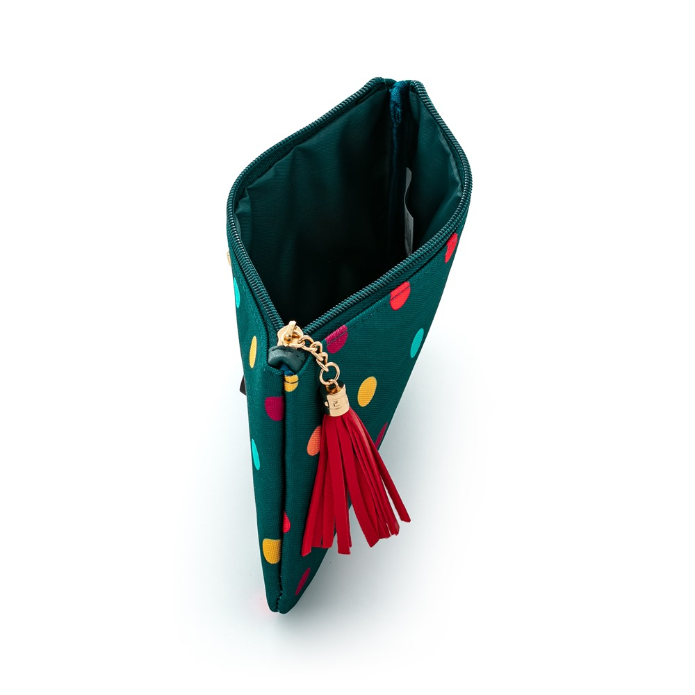 Cosmetic bag in polka-dot design, zip fastening. Suitable for storing small items in your handbag.