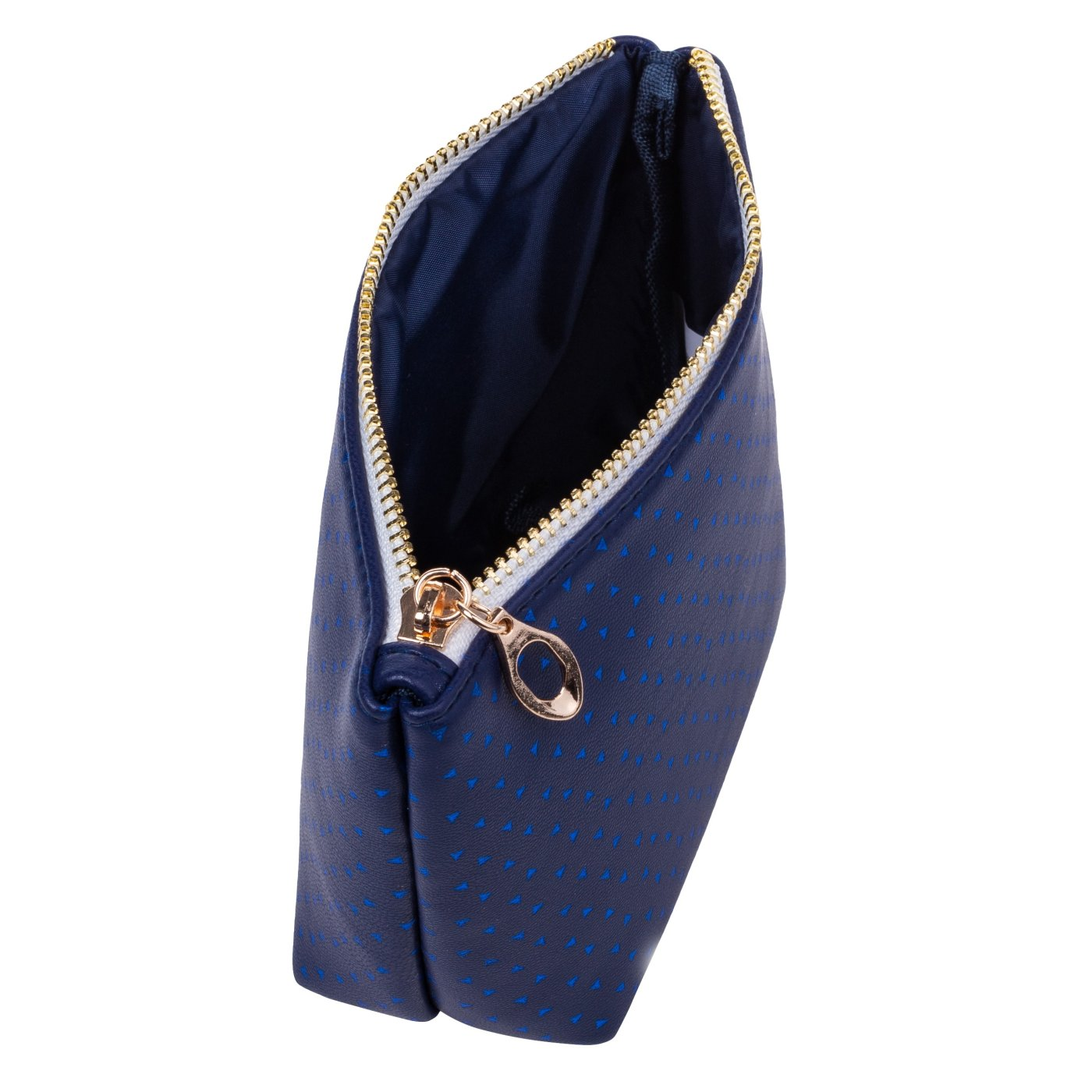 Smaller cosmetic bag in blue design, suitable for organizing small items in a handbag. Zip fastening. Material 100% polyester.