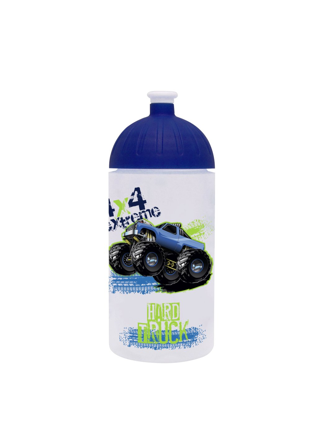 Plastic drinking bottle with truck theme. The bottle is made of quality, harmless material.