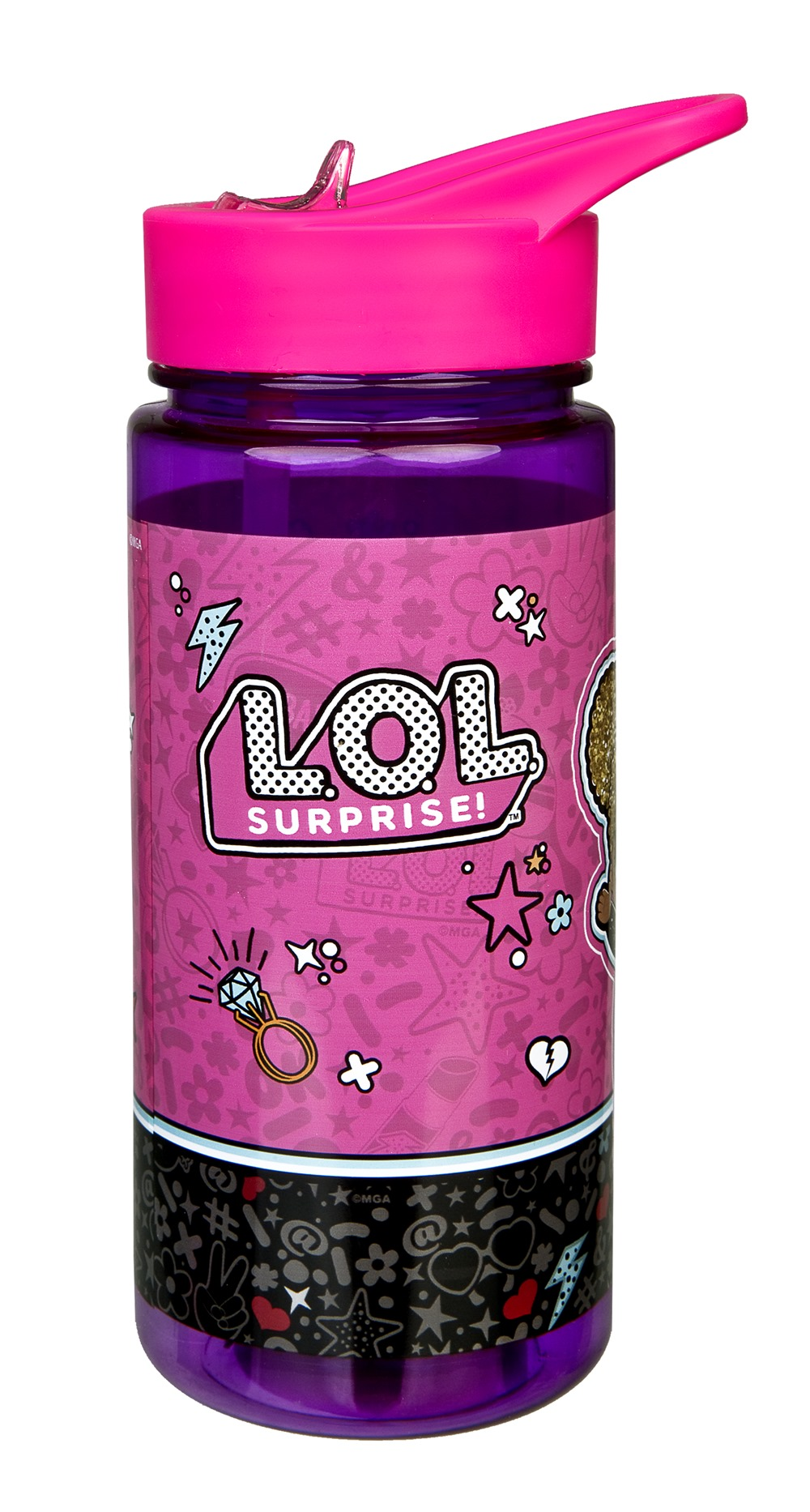 Plastic drinking bottle in LOL Surprise design.