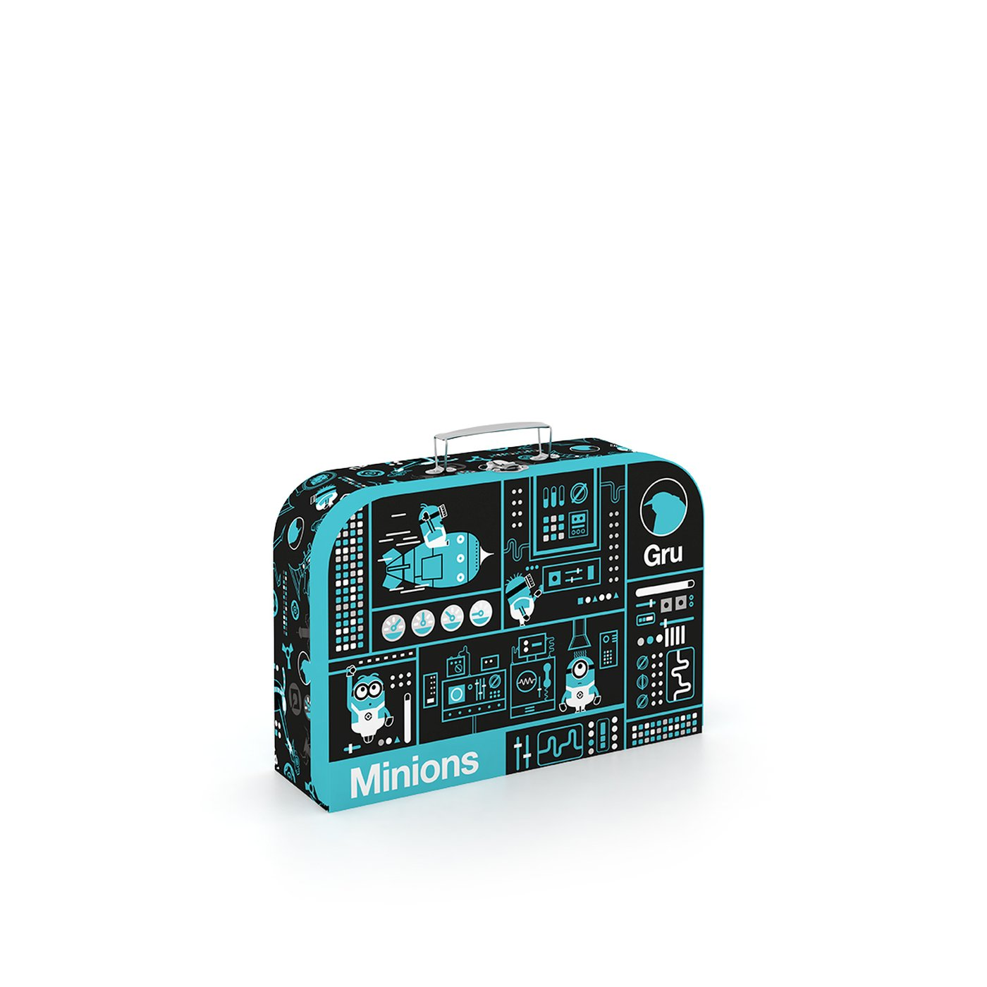Lamino kufřík na výtvarnou výchovu s motivem Mimoňů. Do kufříku se vejde formát A4.