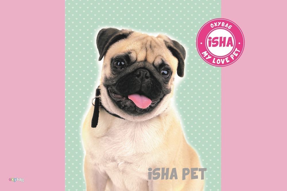 Table mat with Pug theme. Practical desk mat that protects furniture against damage. Washable surface, PVC material.