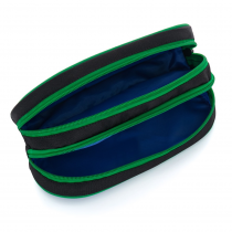 School case etue in green and blue design. The pencilcase is equipped with two separate pockets with solid zippers. Suitable for secondary school children and older students.