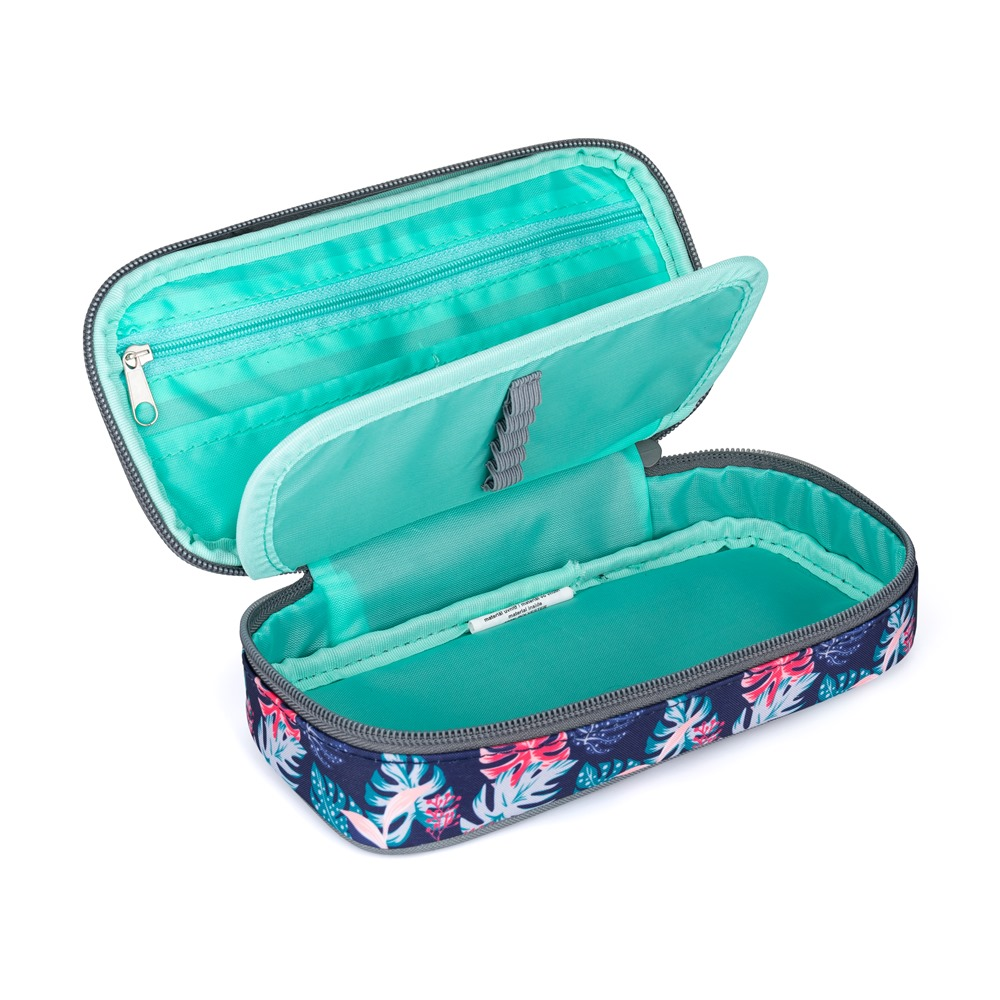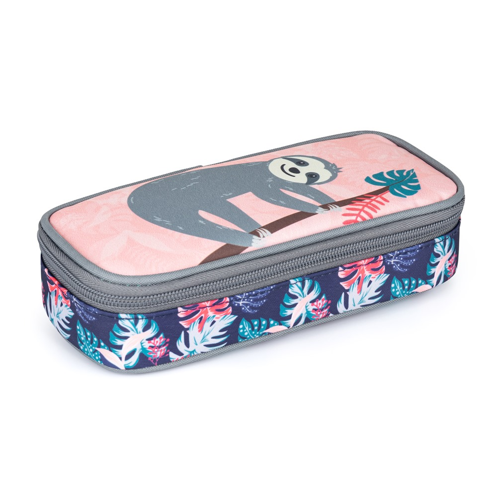Pencil pouch in Sloth motif. The pencil case is equipped with firm zippers, zipped pocket and flap with firm loops on both sides. Under the flap there is a place for storage of stationery and other small items.