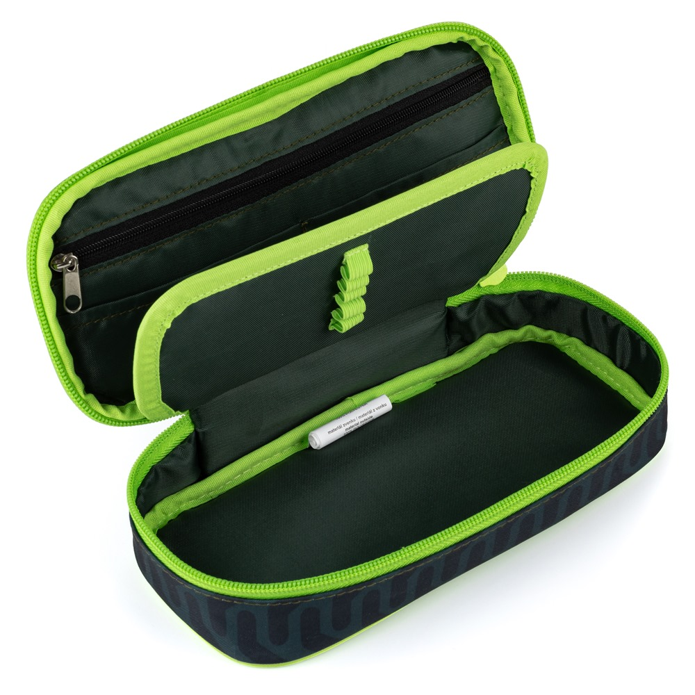 Pencil pouch in Tractor motif. The pencil case is equipped with firm zippers, zipped pocket and flap with firm loops on both sides. Under the flap there is a place for storage of stationery and other small items. Suitable for secondary school children and older students.