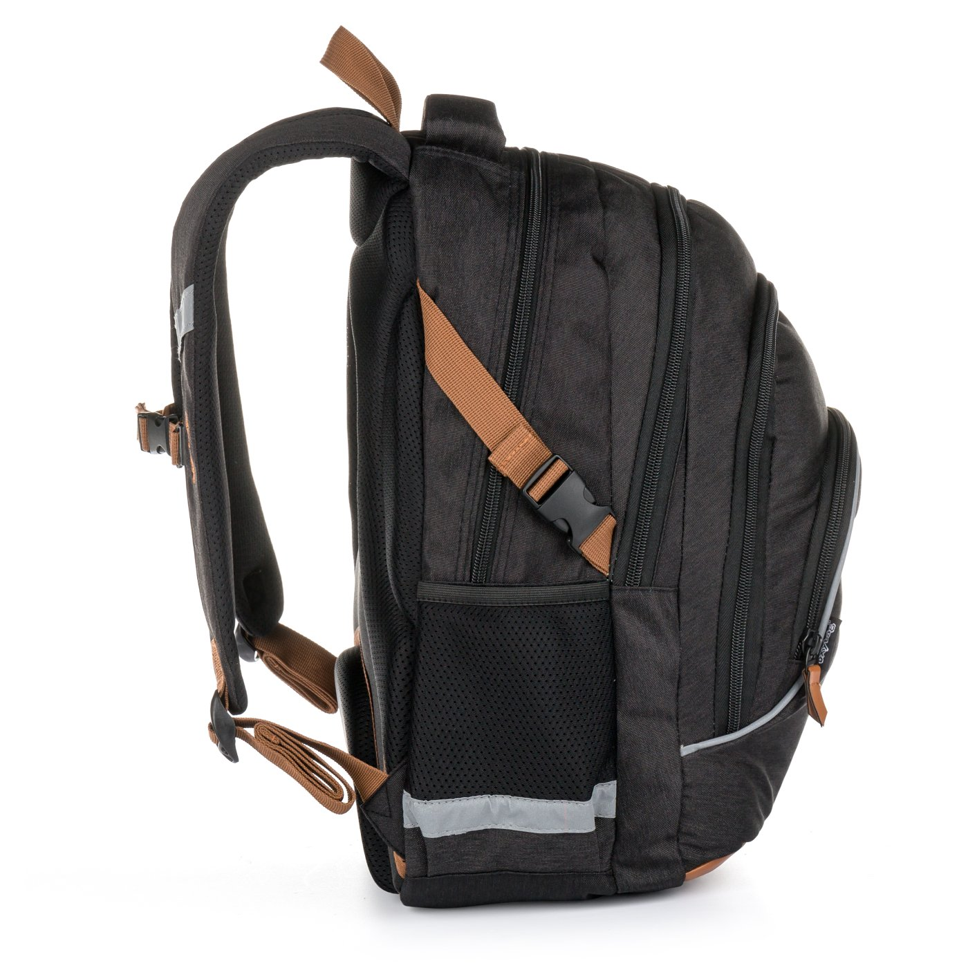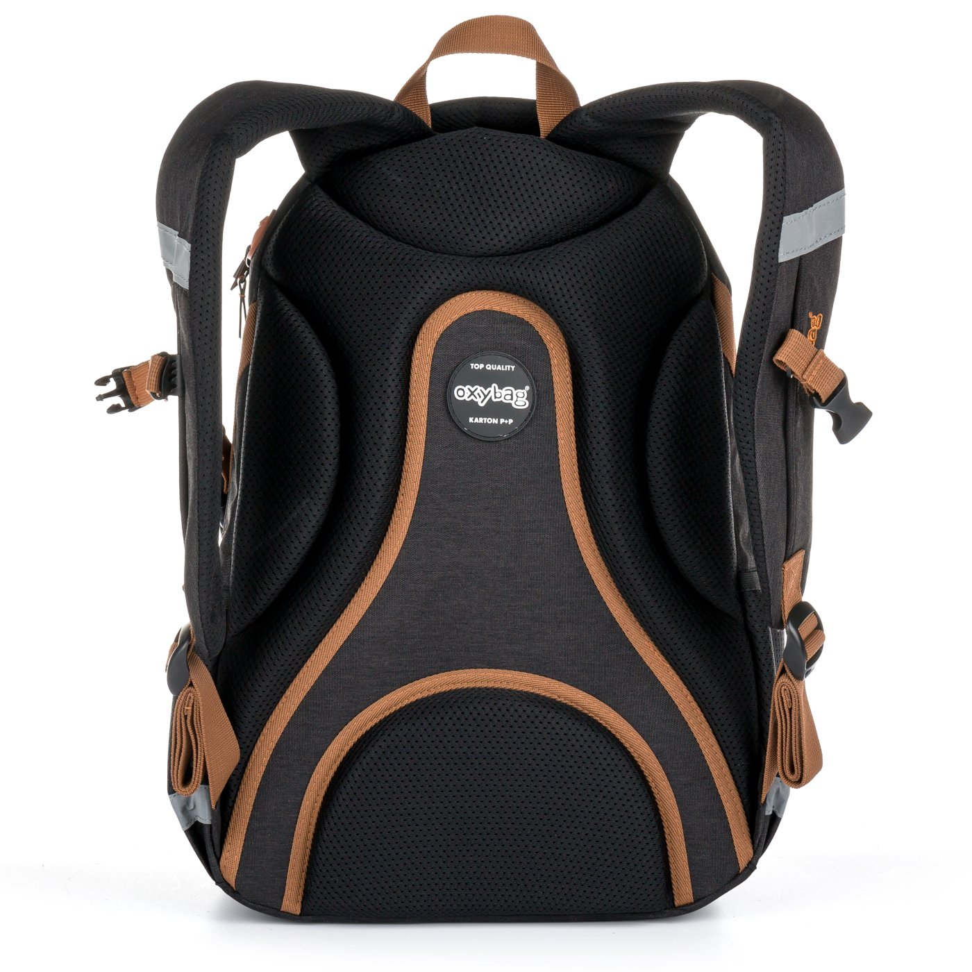 Oxy Scooler is a three-compartment backpack for pupils and students with a side bottle pocket, organizer, inner small pocket and also has a pocket for notebooks up to 15 ". Adjustable shoulder straps and chest strap together with anatomically shaped breathable back system for maximum wearing comfort. Of course, there are reflective elements.