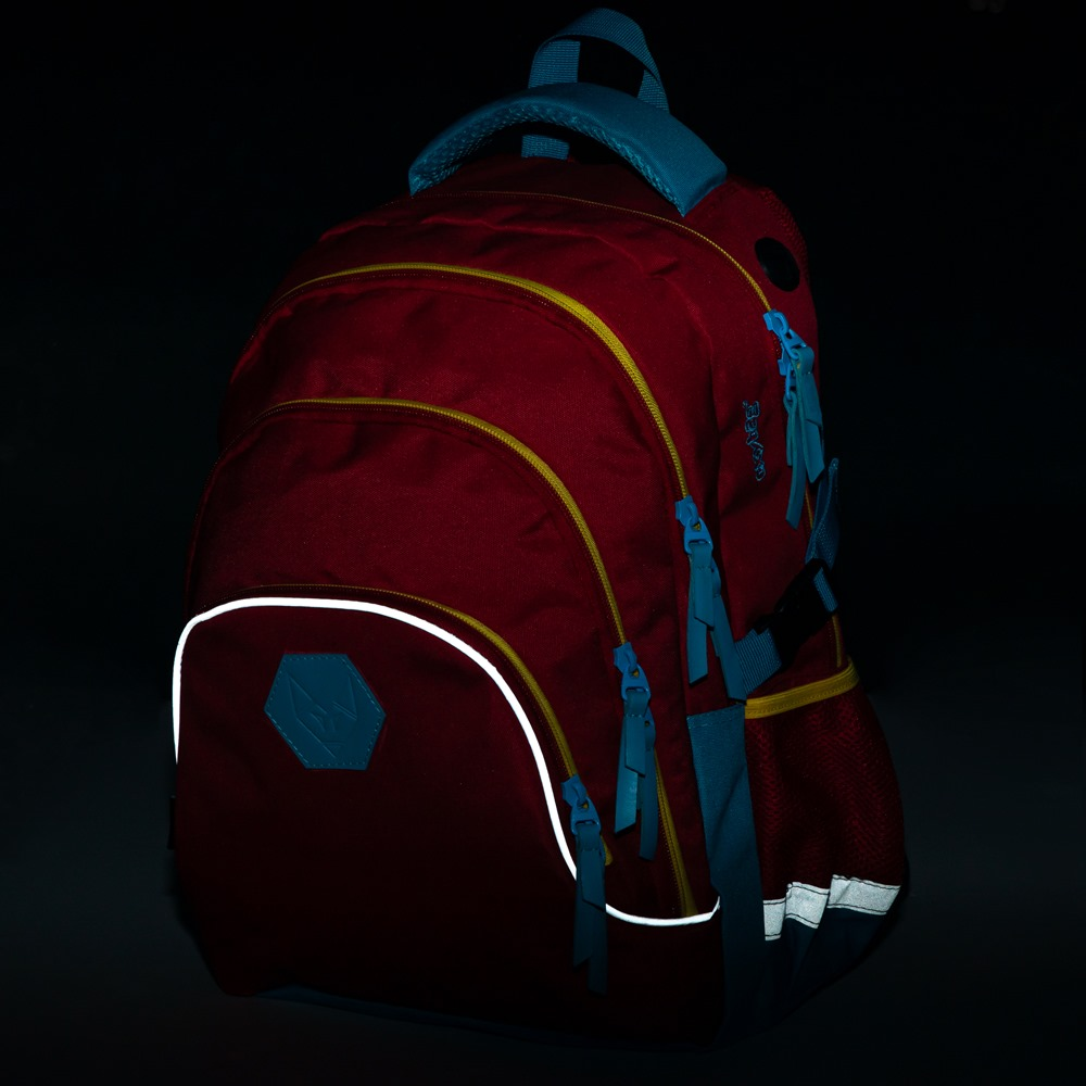 Oxy Scooler is a three-compartment backpack for pupils and students with a side bottle pocket, organizer, inner small pocket and also has a pocket for notebooks up to 15 ". Adjustable shoulder straps and chest strap together with anatomically shaped breathable back system for maximum wearing comfort. Of course, there are reflective elements.