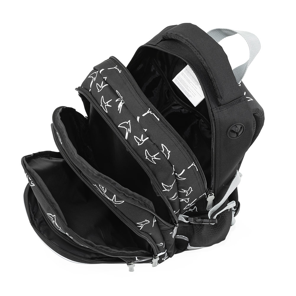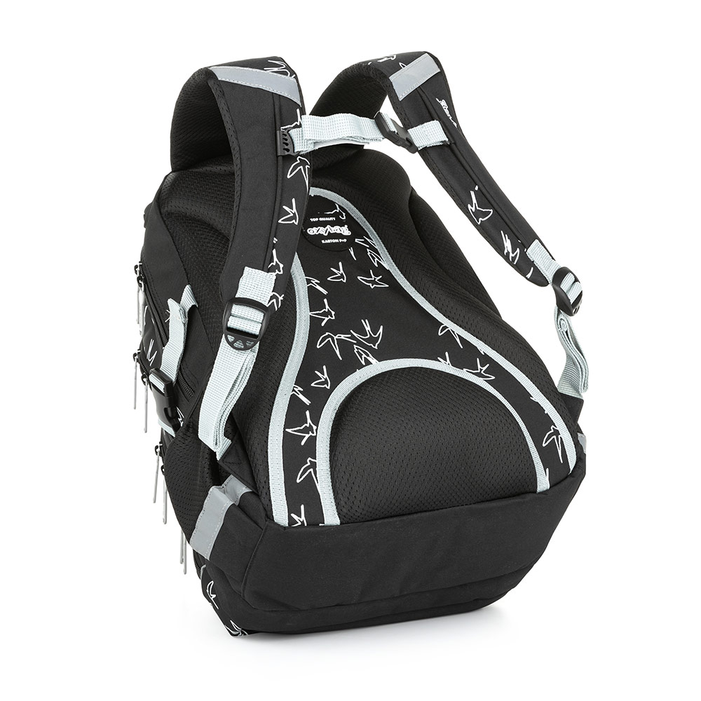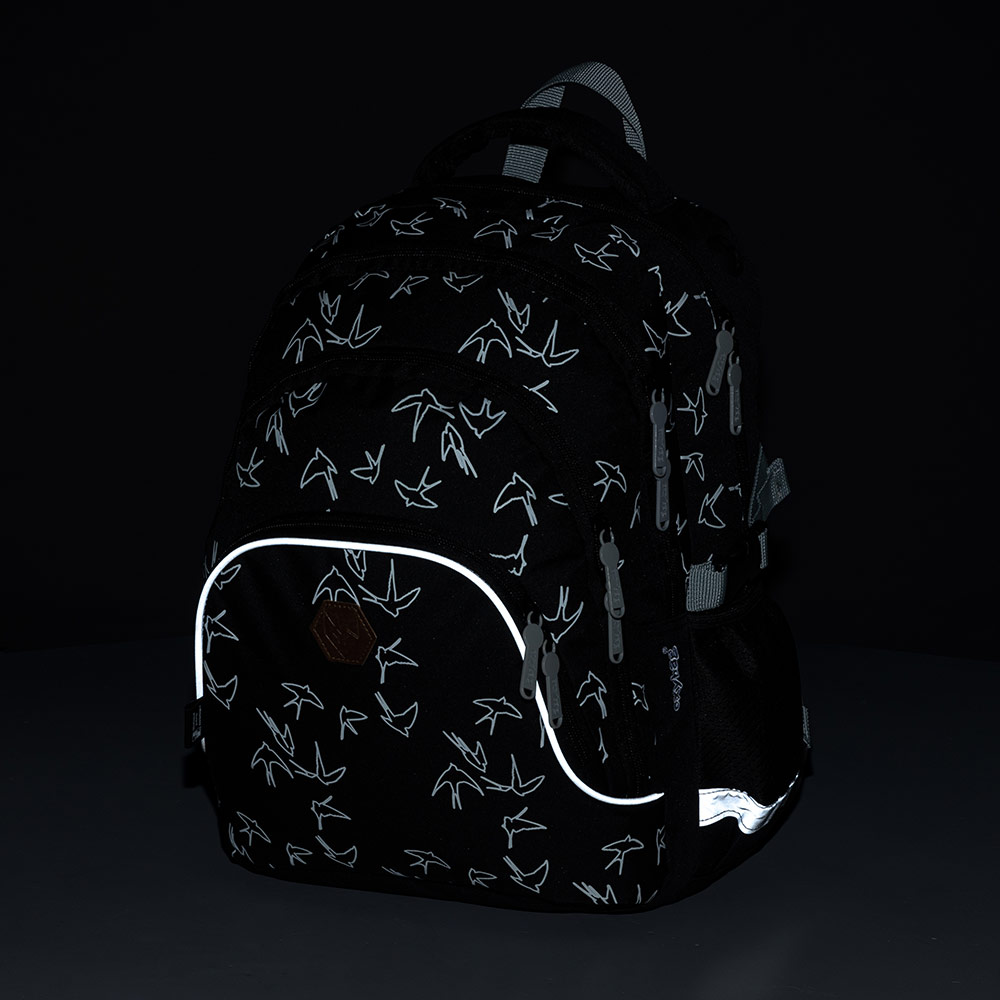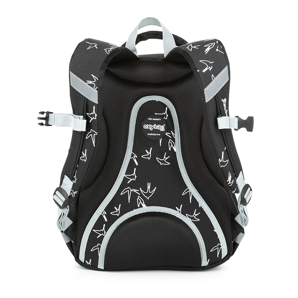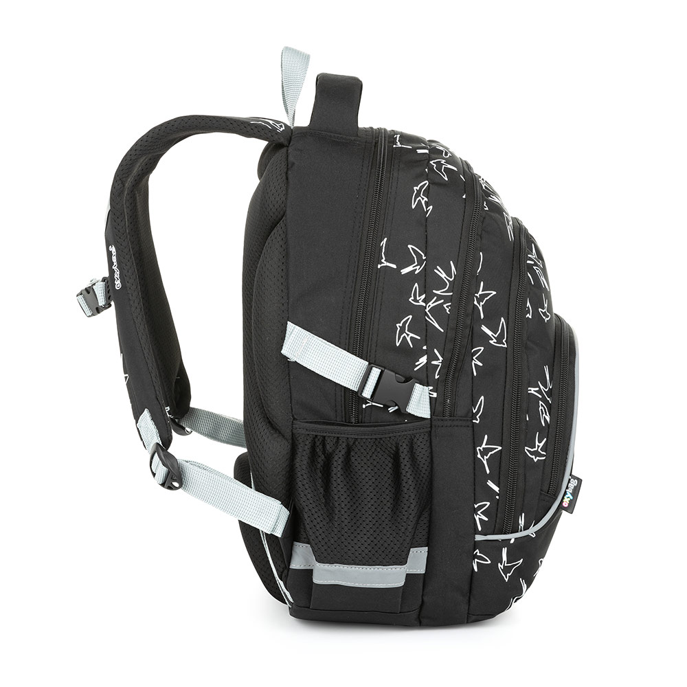 Oxy Scooler is a three-compartment backpack for pupils and students with a side bottle pocket, organizer, inner small pocket and also has a pocket for notebooks up to 15 ". Adjustable shoulder straps and chest strap together with anatomically shaped breathable back system for maximum wearing comfort. Of course, there are reflective elements.