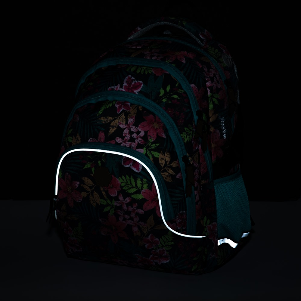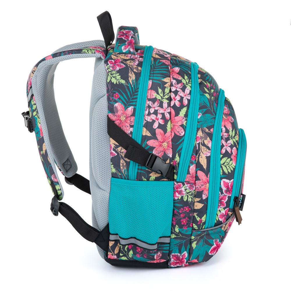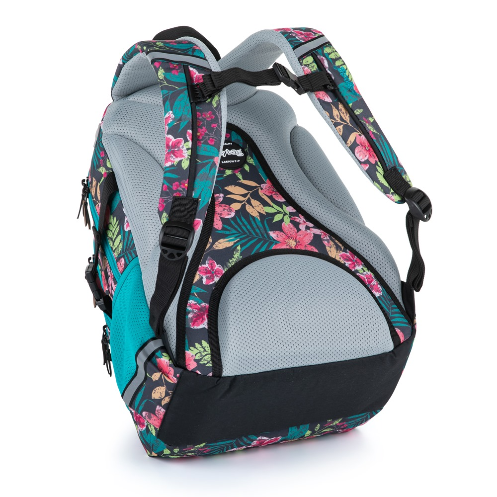Oxy Scooler is a three-compartment backpack for pupils and students with a side bottle pocket, organizer, inner small pocket and also has a pocket for notebooks up to 15". Adjustable shoulder straps and chest strap together with anatomically shaped breathable back system for maximum wearing comfort. Of course, there are reflective elements.