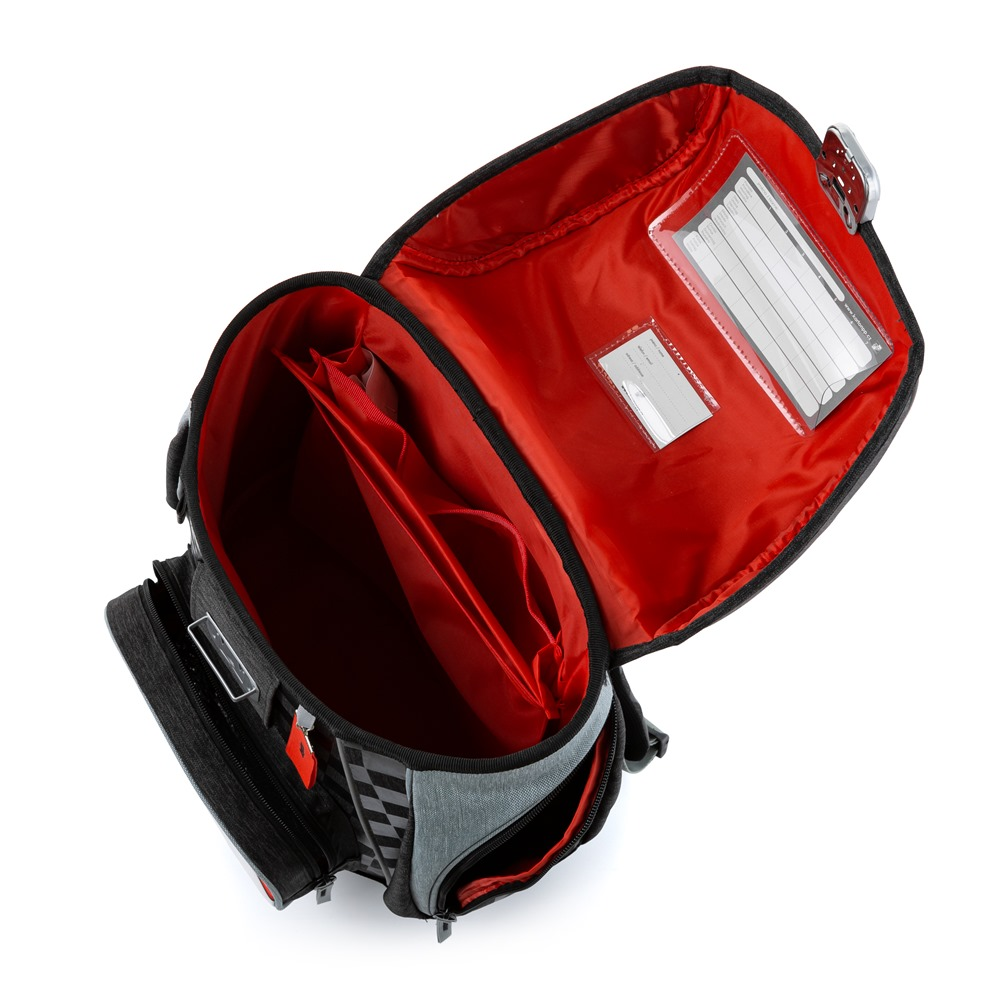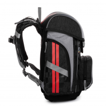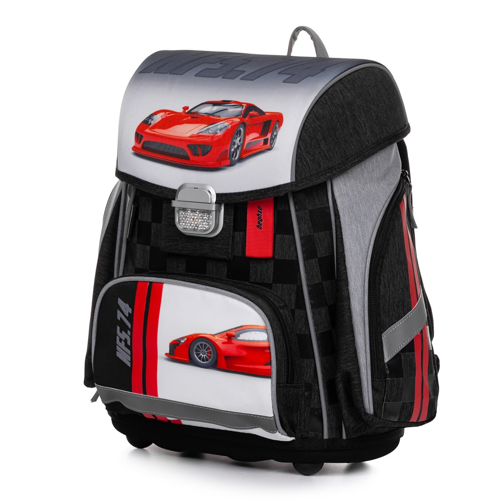 Premium backpack with car motif is anatomically shaped to ensure proper seating on the back. Reinforced back and inner reinforcement keep the backpack in a constant shape. The padding is made of comfortable breathable material, the wide soft straps are designed to fit perfectly and evenly load the child´s shoulders. The bag consists of one spacious compartment, which can comfortably fit all school supplies for children in 1st and 2nd class. The bottom of the backpack is made of solid material, protecting the contents from tipping and spilling. Fastening is on the safety buckle. The front pocket is designed for a snack, there are many reflective elements that make the bag more visible.