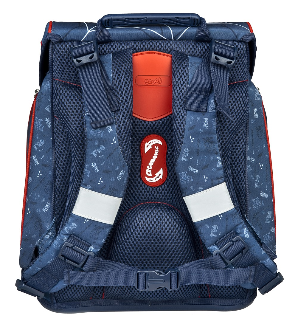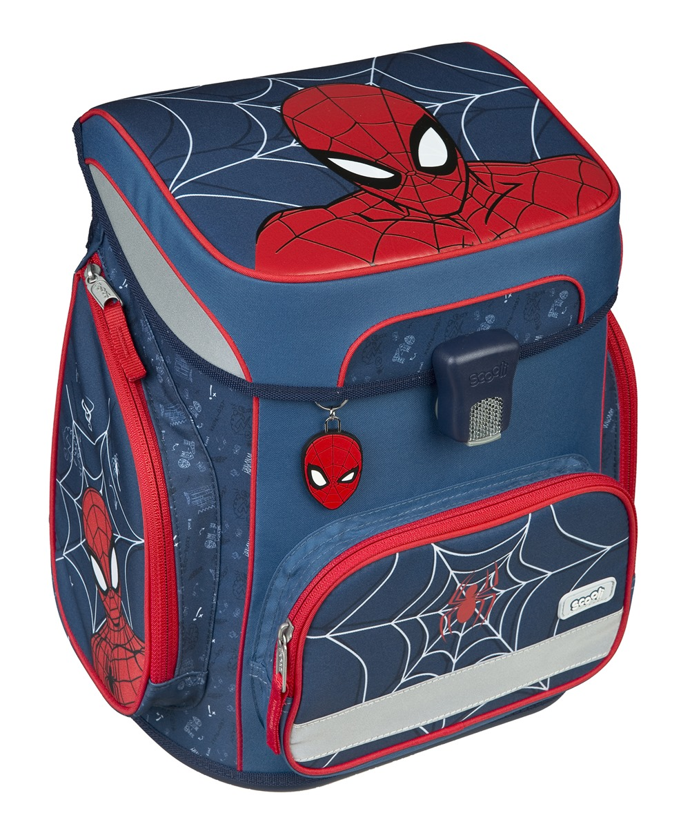 Premium backpack with Spiderman motif is anatomically shaped to ensure proper seating on the back. Reinforced back and inner reinforcement keep the backpack in a constant shape. The padding is made of comfortable breathable material, the wide soft straps are designed to fit perfectly and evenly load the child´s shoulders. The bag consists of one spacious compartment, which can comfortably fit all school supplies for children in 1st and 2nd class. The bottom of the backpack is made of solid material, protecting the contents from tipping and spilling. Fastening is on the safety buckle. The front pocket is designed for a snack, there are many reflective elements that make the bag more visible.