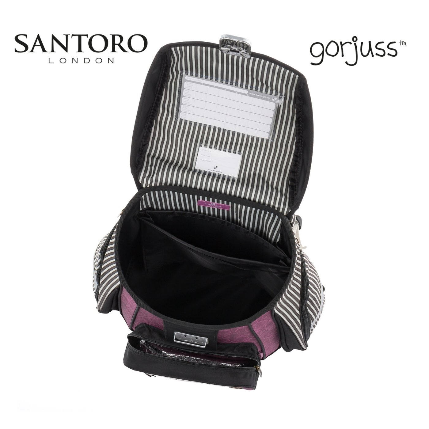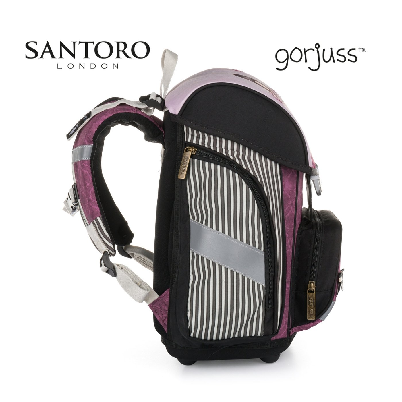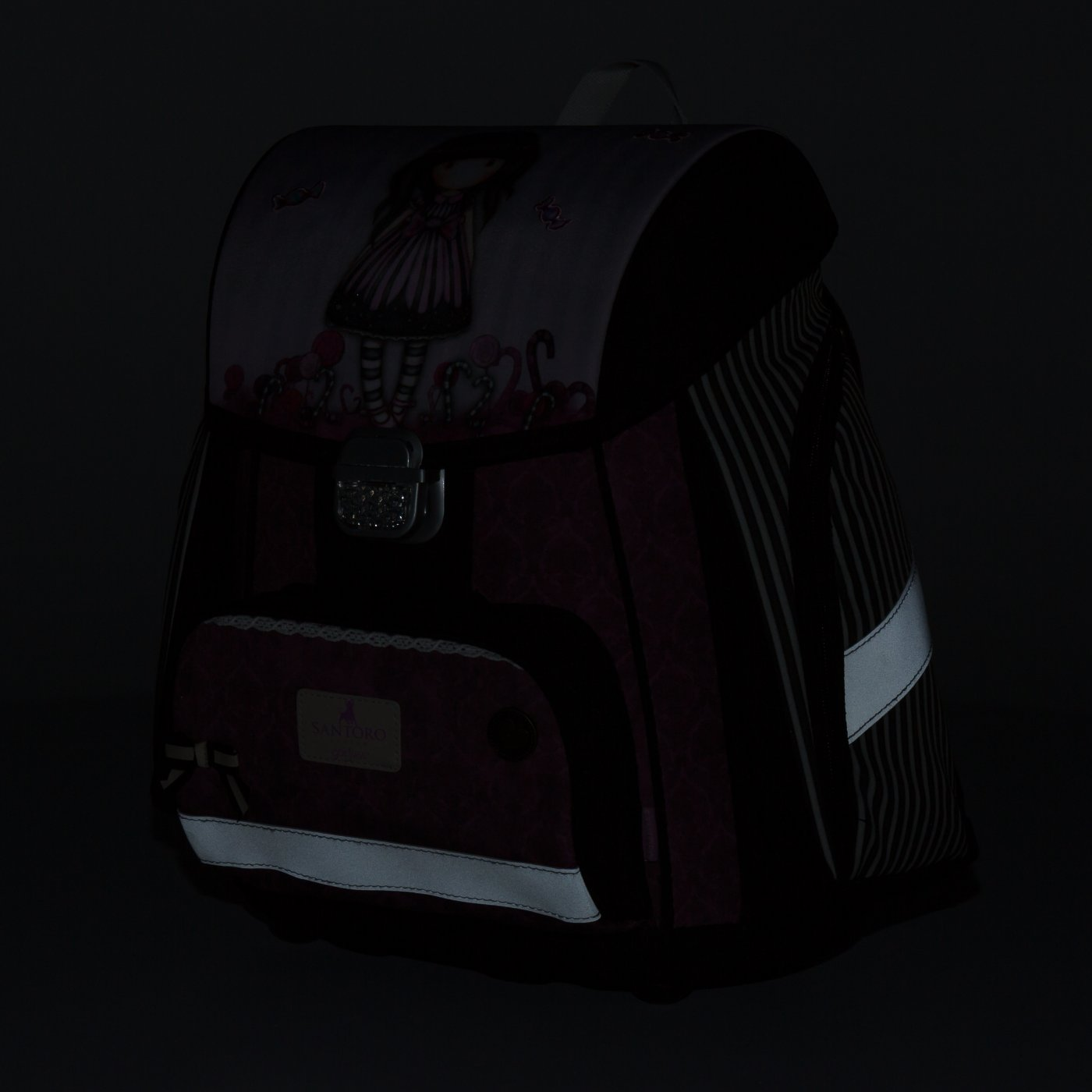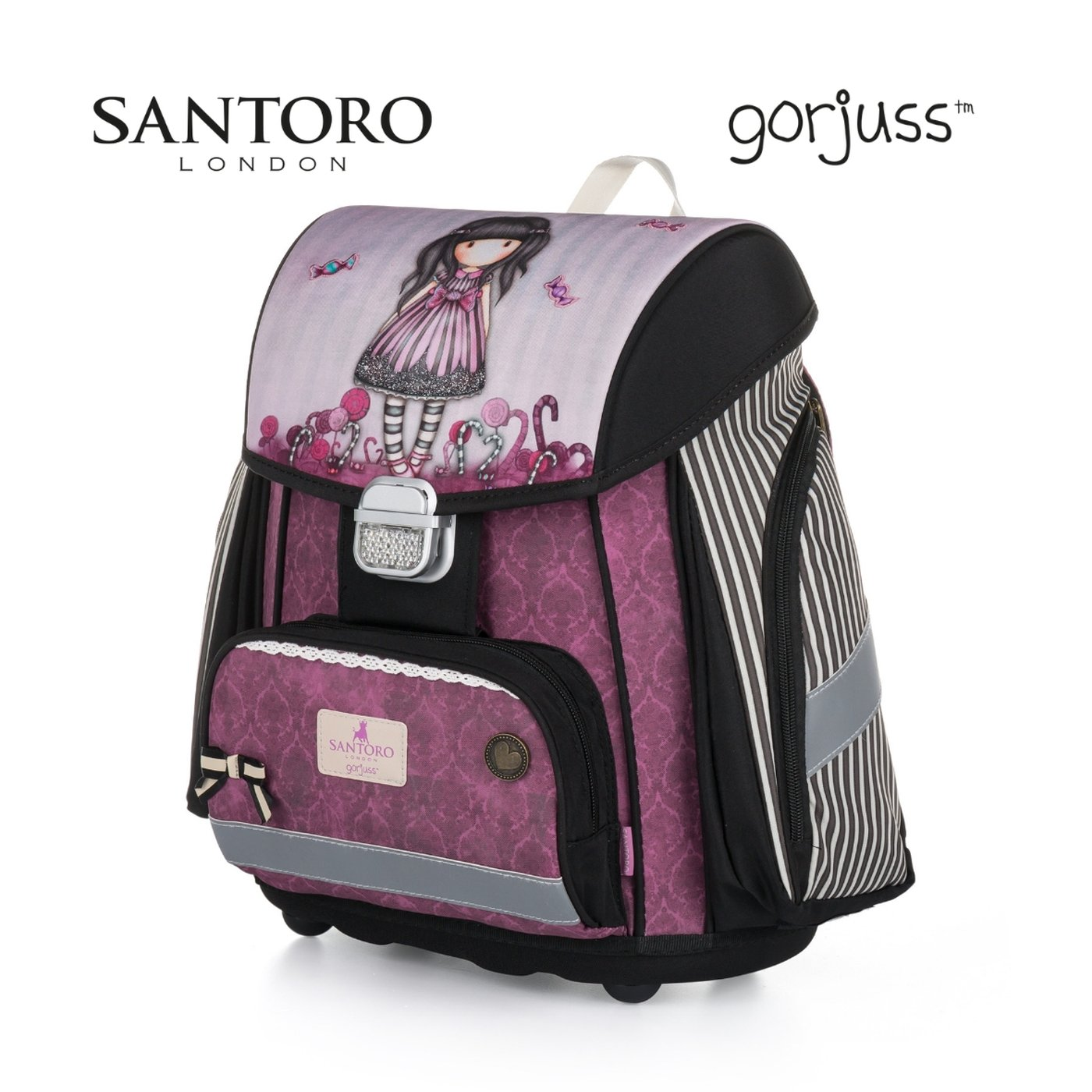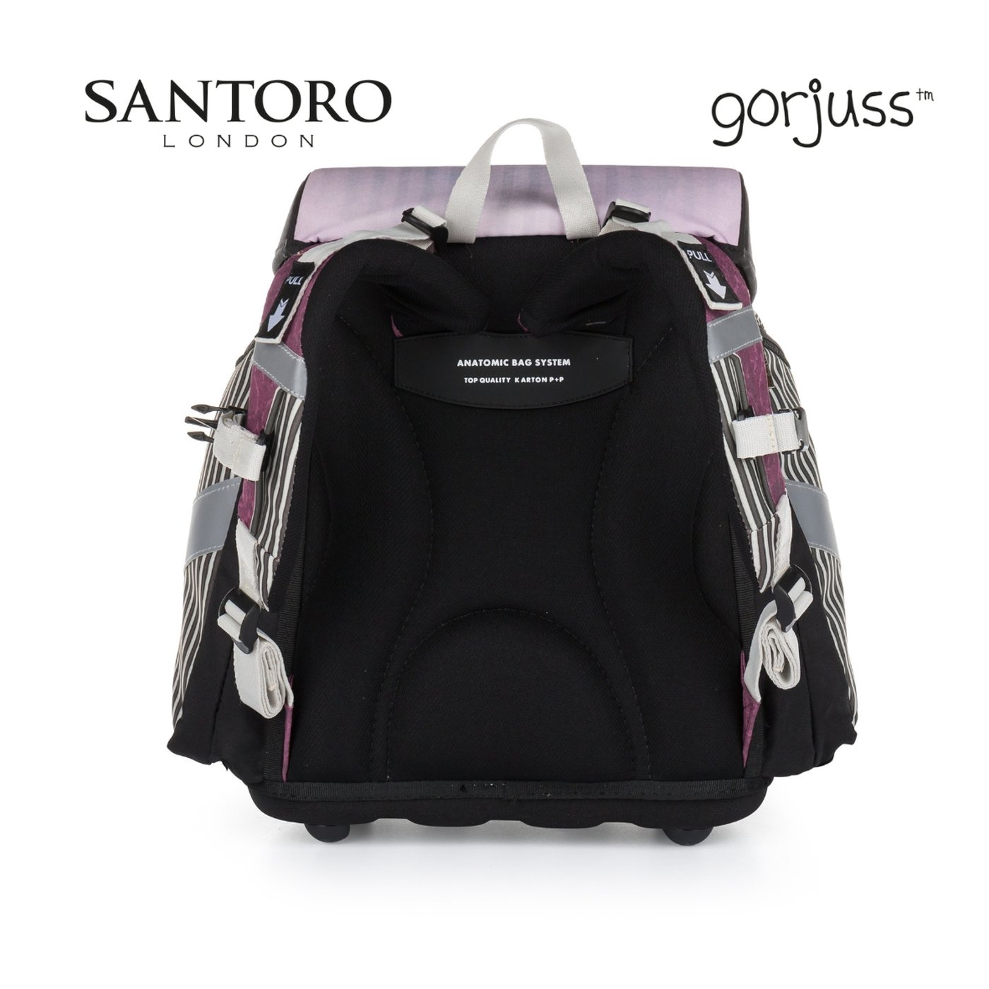 Premium backpack with Santoro´s Sugar And Spice motif is anatomically shaped to ensure proper seating on the back. Reinforced back and inner reinforcement keep the backpack in a constant shape. The padding is made of comfortable breathable material, the wide soft straps are designed to fit perfectly and evenly load the child´s shoulders. The bag consists of one spacious compartment, which can comfortably fit all school supplies for children in 1st and 2nd class. The bottom of the backpack is made of solid material, protecting the contents from tipping and spilling. Fastening is on the safety buckle. The front pocket is designed for a snack, there are many reflective elements that make the bag more visible.