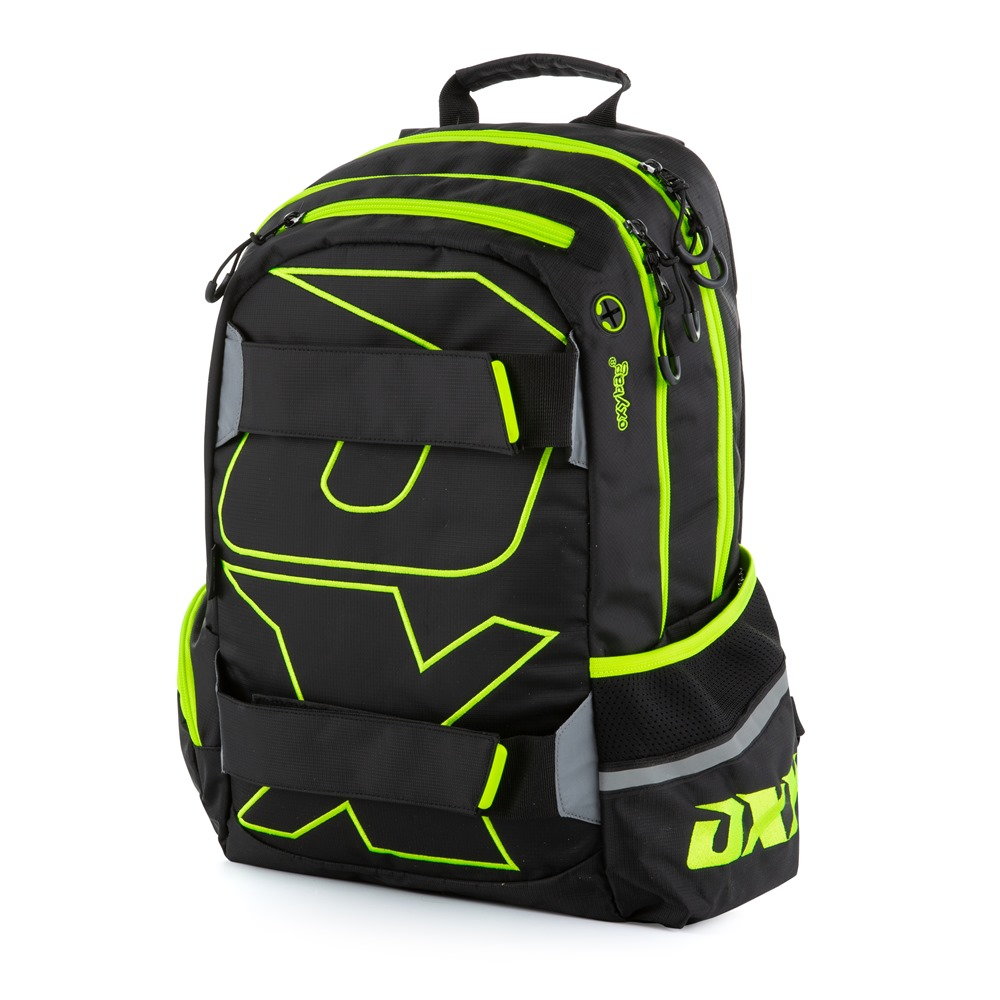 Školní batoh: Stylový sympaťák z řady batohů OXY SPORT vyniká promyšlenými designovými detaily i maximální funkčností. Starší školáky a studenty doprovodí do školy, hodí se i pro dospělé. Skvělý společník pro školní i volný čas. Získá si vás hned z několika důvodů: ergonomicky tvarovaný zádový systém zajistí pohodlí každým zádům. Nošení zpříjemňují polstrované ramenní popruhy a hrudní popruh, které lze libovolně nastavit. Hlavní kapsy uzavírají pevné zipy s barevnými poutky. Do otevřené boční kapsy snadno dáte láhev vody. Zipová boční kapsa pohlídá klíče či mobil. Výrazné reflexní prvky nepřehlédne žádný řidič. Jeho vnitřní členění si zamilujete: 2 oddělené komory, praktická kapsa na notebook velikosti 15“ a navíc menší kapsa na zip na všelijaké drobnosti. Přehled především! Lehký jako pírko, prázdný neváží ani celé kilo. Přesto prostorný, sbalíte do něj až 27 litrů školních či volnočasových nezbytností. Školní pouzdro etue: Pouzdro je opatřeno pevnými zipy, kapsičkou na zip a klopou s pevnými poutky po obou stranách. Pod klopou je místo pro volné uložení psacích potřeb nebo jiných drobností. Vhodné pro školáky na 2. stupni a starší studenty. Vak na záda: Sportovní vak na záda pro teenagery i dospělé v zeleno-bílém provedení. Vhodné pro sportovní využití i běžné nošení.