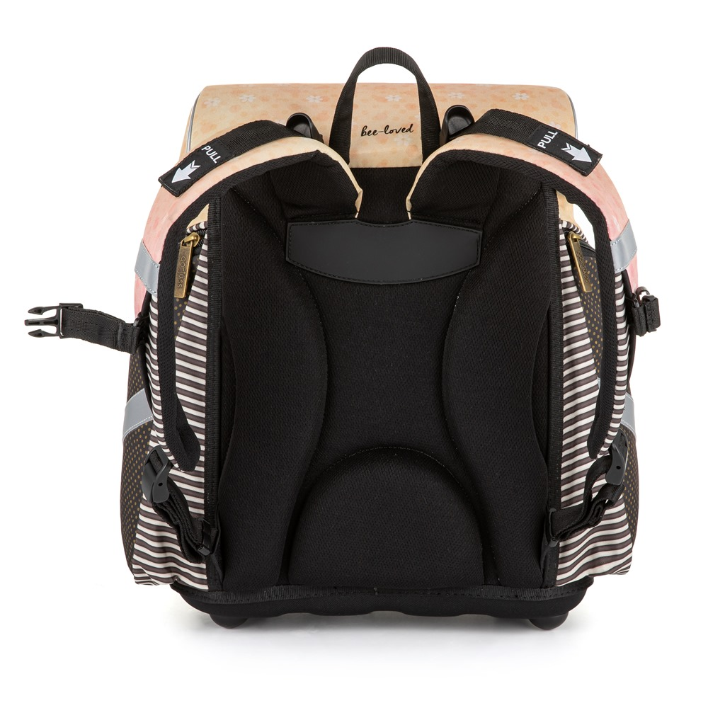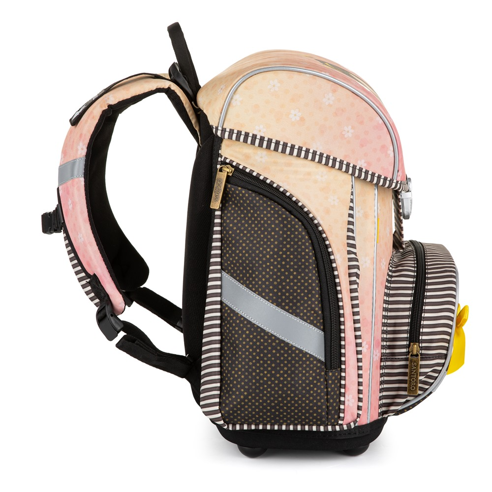 Školní set pro prvňáčka s motivem Santoro Bee-loved. Set obsahuje školní batoh Premium, sáček na cvičky, prázdný jednopatrový penál, kufřík a box na sešity A4.