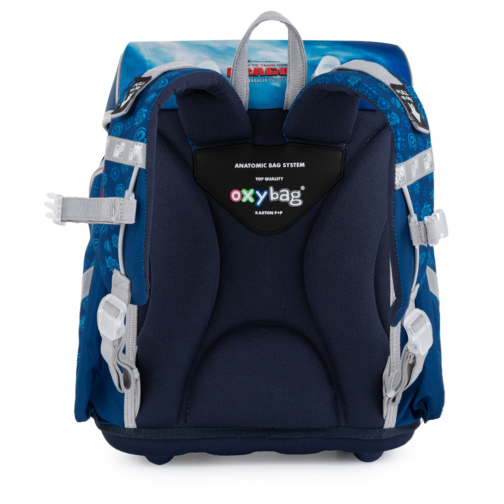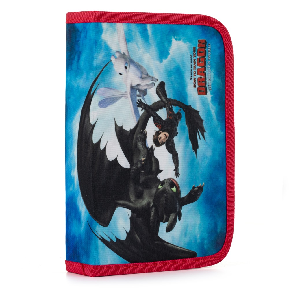 Školní set pro prvňáčka s motivem Jak vycvičit draka. Set obsahuje školní batoh Premium, sáček na cvičky, prázdný jednopatrový penál, kufřík a box na sešity A4.