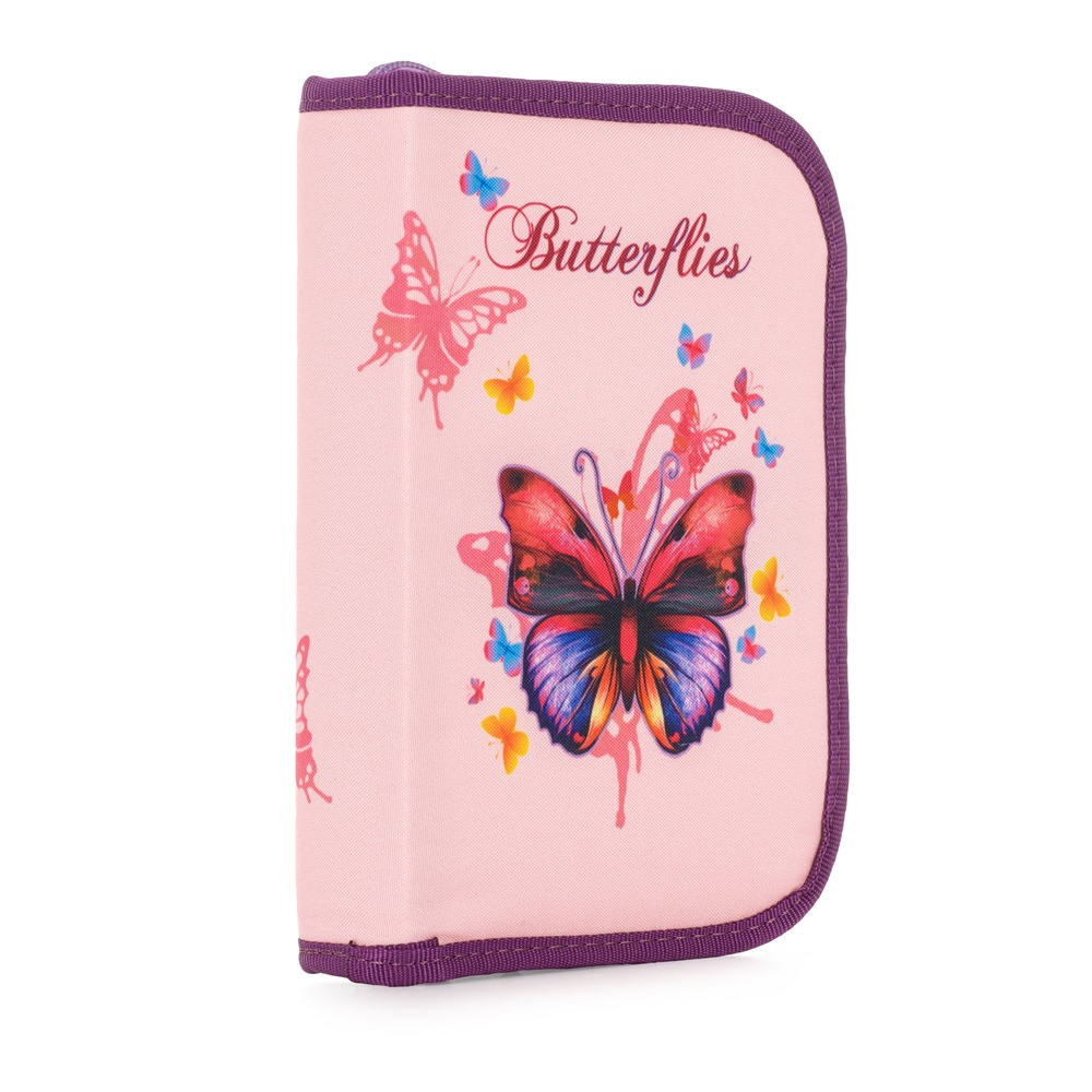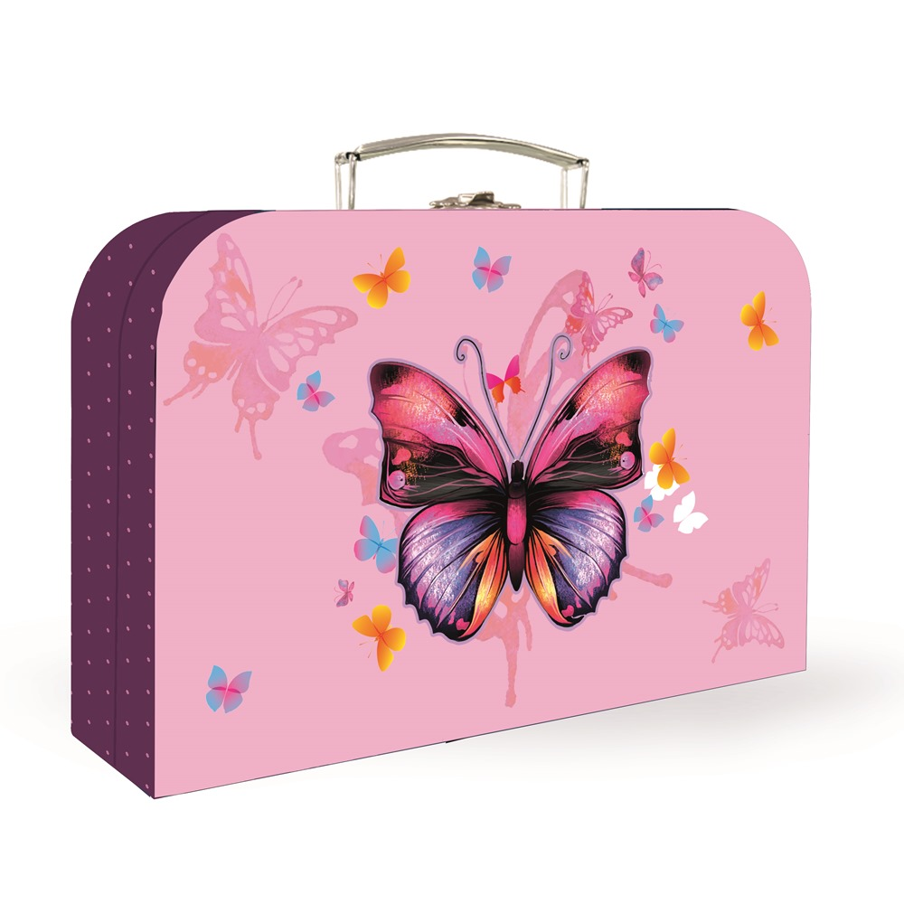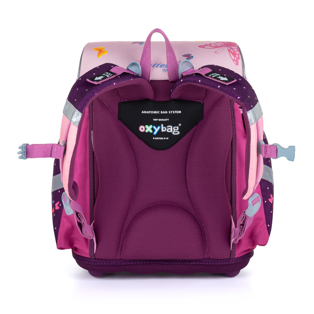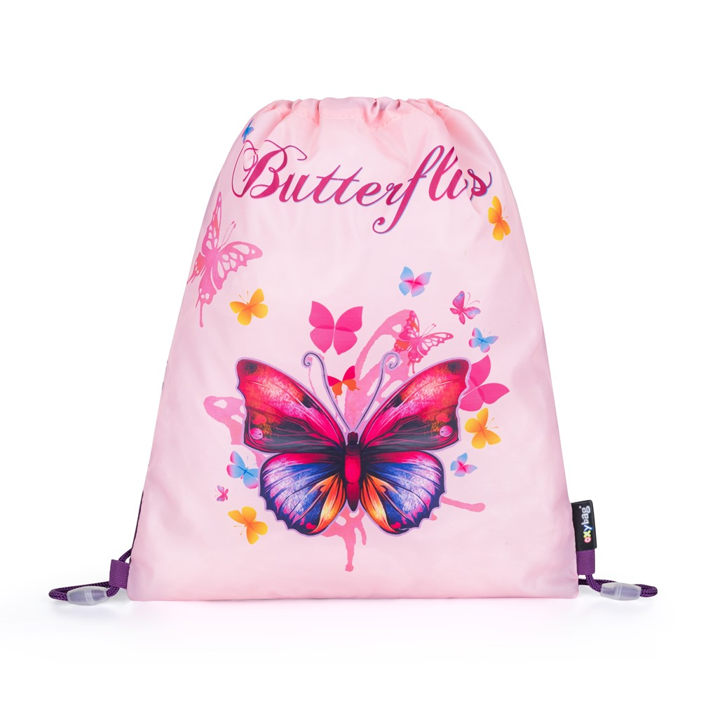 Školní set pro prvňáčka s motivem motýla. Set obsahuje školní batoh Premium, sáček na cvičky, prázdný jednopatrový penál, kufřík a box na sešity A4 Jumbo.