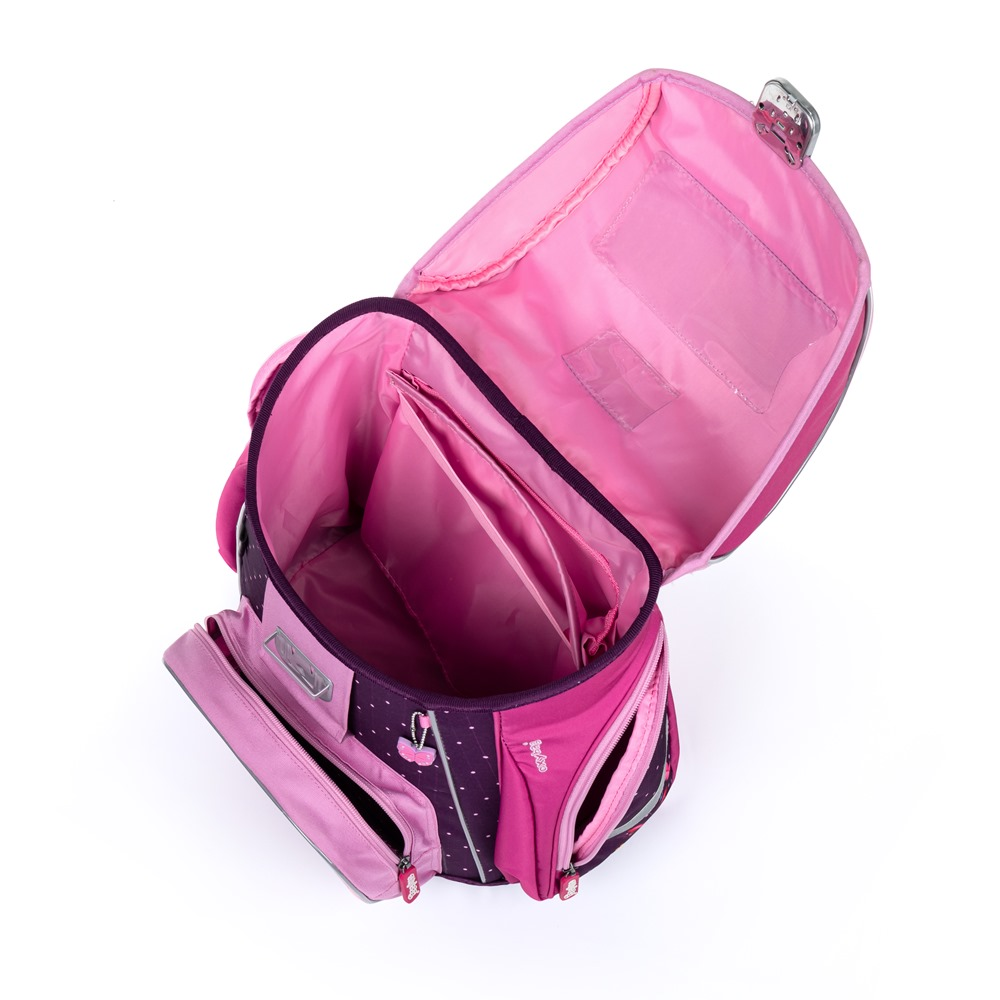 Aktovka: Školní aktovka z řady Premium je anatomicky tvarovaná a zajišťuje tak správné usazení na zádech. Vyztužená záda a vnitřní výztuha udržují stálý tvar batohu. Polstrování je z příjemného prodyšného materiálu, široké měkčené popruhy jsou navrženy tak, aby dokonale přilnuly a rovnoměrně zatížily ramena dítěte. Aktovka se skládá z jedné prostorné komory, kam se pohodlně vejdou všechny školní pomůcky pro děti v 1. a ve 2. třídě. Dno batohu je z pevného materiálu, chrání tím obsah před převržením a vysypáním. Zapínání je na bezpečnostní přezku. Přední kapsička je určena na svačinu, nechybí řada reflexních prvků, díky kterým je aktovka viditelnější.
