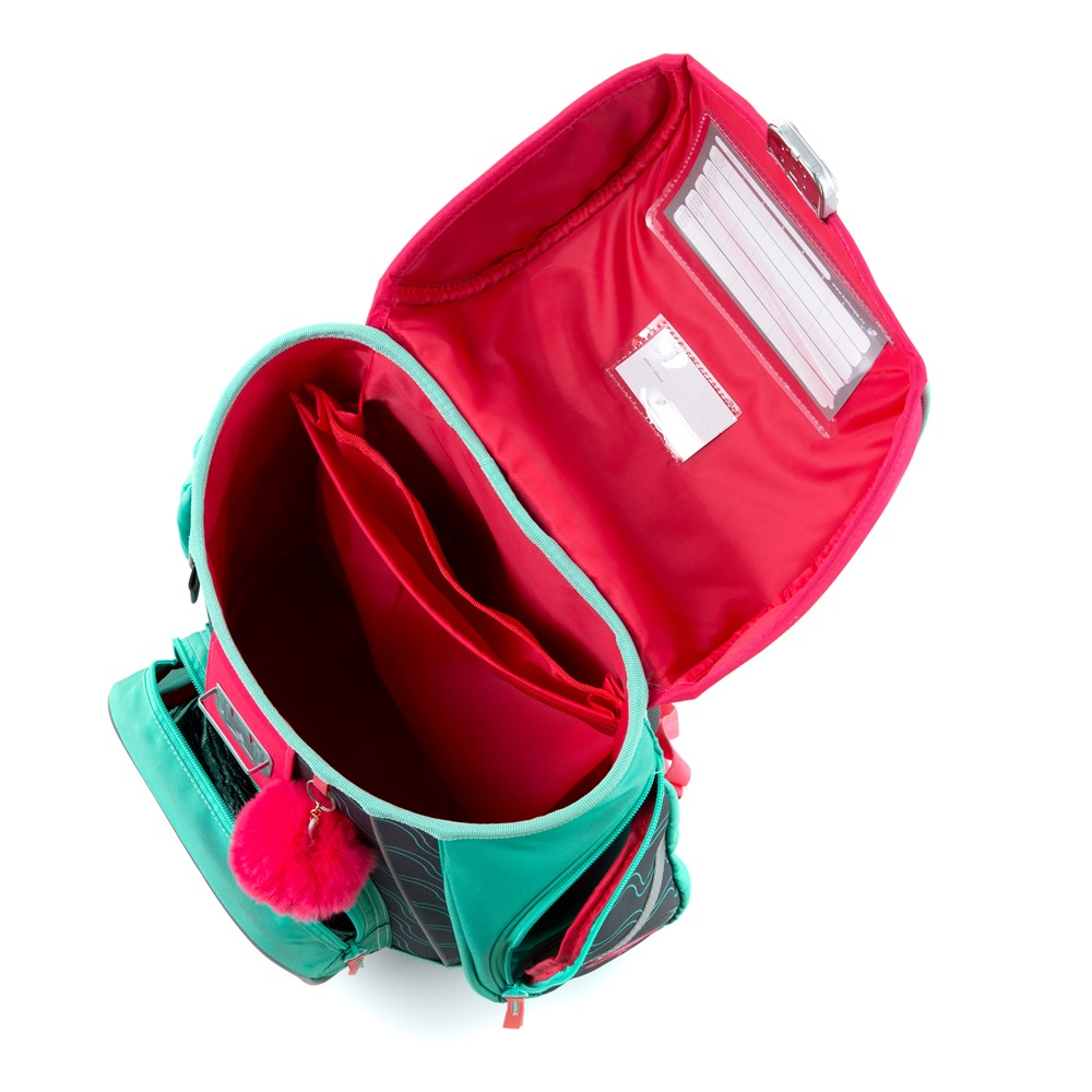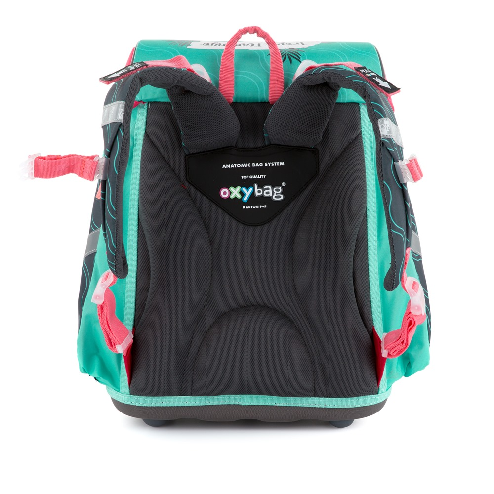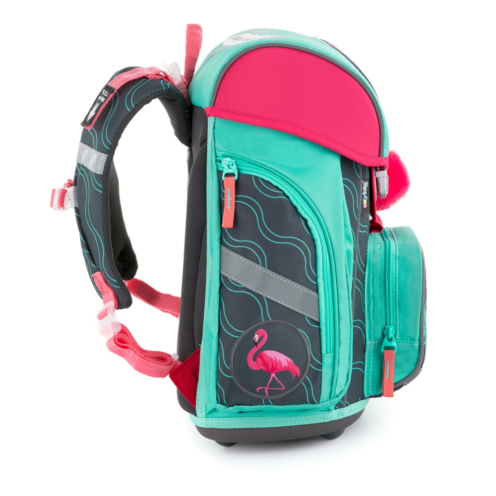 Aktovka: Školní aktovka z řady Premium s motivem plameňáka je anatomicky tvarovaná a zajišťuje tak správné usazení na zádech. Vyztužená záda a vnitřní výztuha udržují stálý tvar batohu. Polstrování je z příjemného prodyšného materiálu, široké měkčené popruhy jsou navrženy tak, aby dokonale přilnuly a rovnoměrně zatížily ramena dítěte. Aktovka se skládá z jedné prostorné komory, kam se pohodlně vejdou všechny školní pomůcky pro děti v 1. a ve 2. třídě. Dno batohu je z pevného materiálu, chrání tím obsah před převržením a vysypáním. Zapínání je na bezpečnostní přezku. Přední kapsička je určena na svačinu, nechybí řada reflexních prvků, díky kterým je aktovka viditelnější.