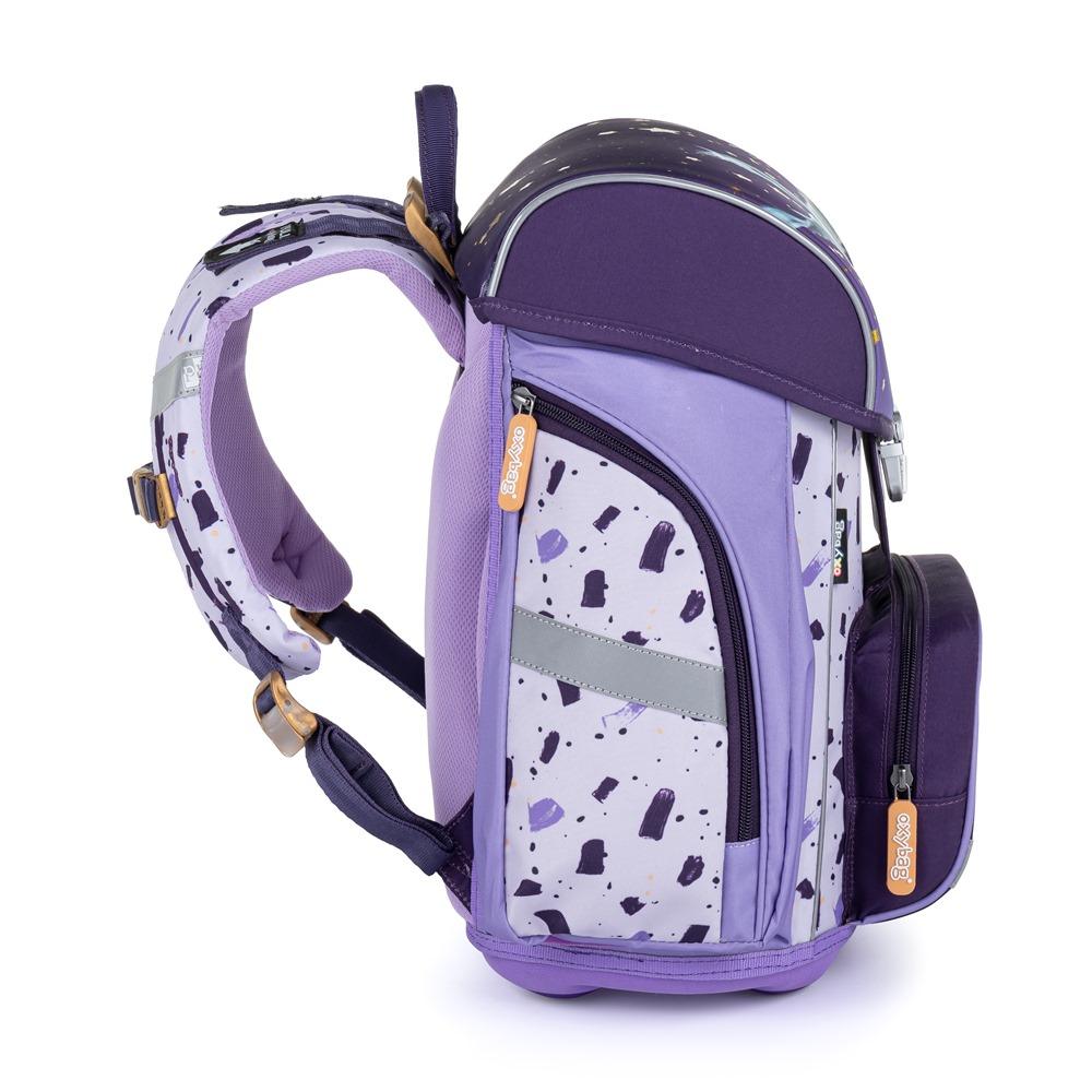 Aktovka: Školní aktovka z řady Premium je anatomicky tvarovaná a zajišťuje tak správné usazení na zádech. Vyztužená záda a vnitřní výztuha udržují stálý tvar batohu. Polstrování je z příjemného prodyšného materiálu, široké měkčené popruhy jsou navrženy tak, aby dokonale přilnuly a rovnoměrně zatížily ramena dítěte. Aktovka se skládá z jedné prostorné komory, kam se pohodlně vejdou všechny školní pomůcky pro děti v 1. a ve 2. třídě. Dno batohu je z pevného materiálu, chrání tím obsah před převržením a vysypáním. Zapínání je na bezpečnostní přezku. Přední kapsička je určena na svačinu, nechybí řada reflexních prvků, díky kterým je aktovka viditelnější.