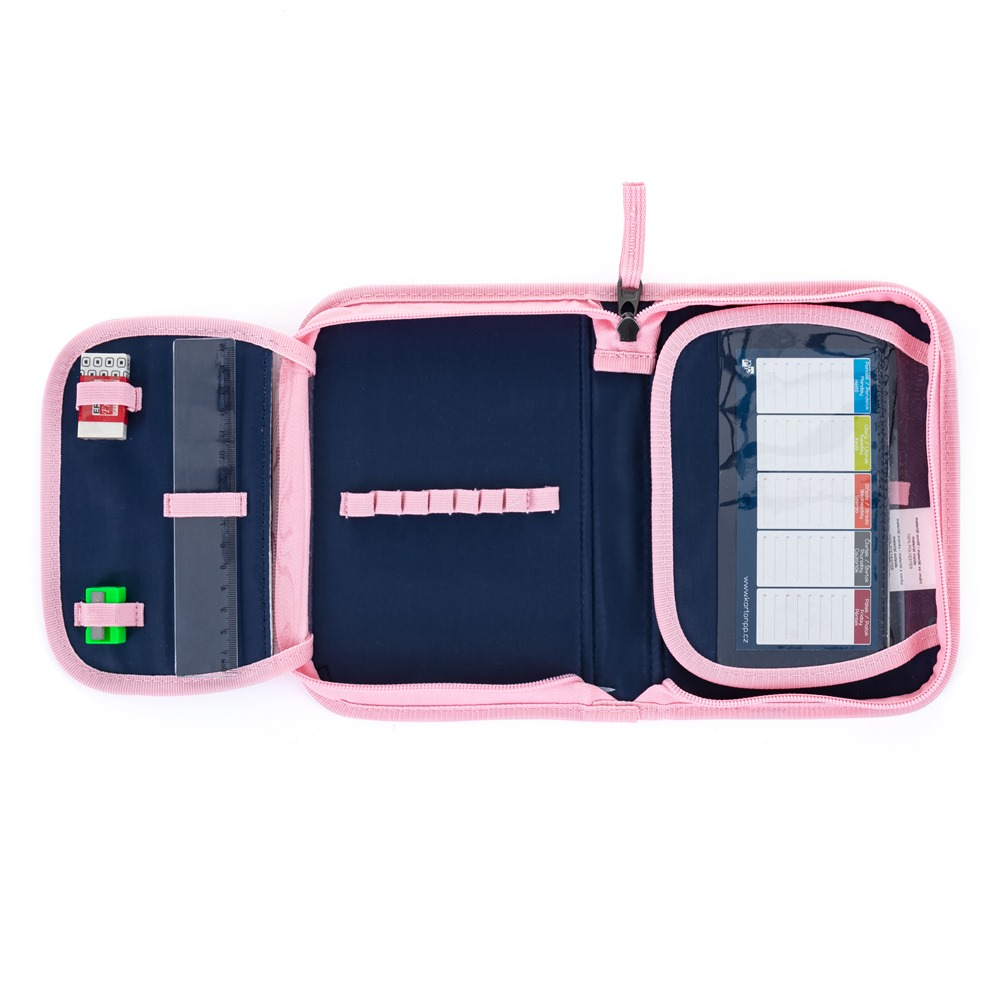 Aktovka: Školní aktovka z řady Premium je anatomicky tvarovaná a zajišťuje tak správné usazení na zádech. Vyztužená záda a vnitřní výztuha udržují stálý tvar batohu. Polstrování je z příjemného prodyšného materiálu, široké měkčené popruhy jsou navrženy tak, aby dokonale přilnuly a rovnoměrně zatížily ramena dítěte. Aktovka se skládá z jedné prostorné komory, kam se pohodlně vejdou všechny školní pomůcky pro děti v 1. a ve 2. třídě. Dno batohu je z pevného materiálu, chrání tím obsah před převržením a vysypáním. Zapínání je na bezpečnostní přezku. Přední kapsička je určena na svačinu, nechybí řada reflexních prvků, díky kterým je aktovka viditelnější.
