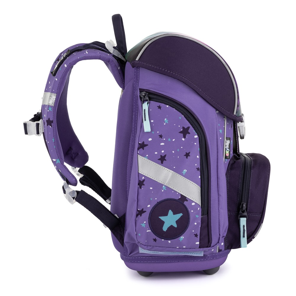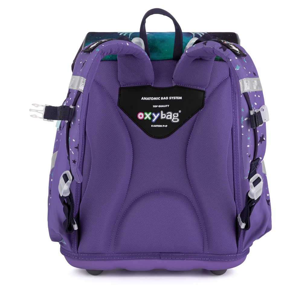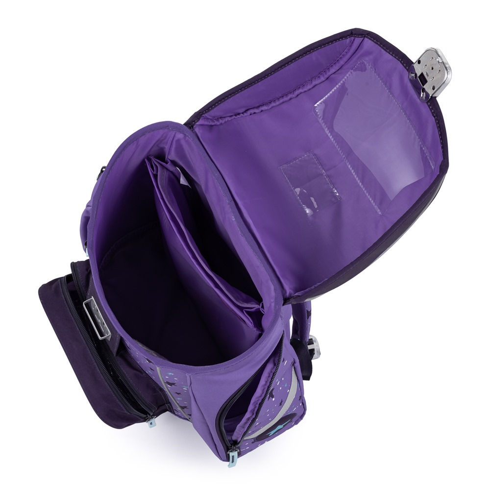 Aktovka: Školní aktovka z řady Premium je anatomicky tvarovaná a zajišťuje tak správné usazení na zádech. Vyztužená záda a vnitřní výztuha udržují stálý tvar batohu. Polstrování je z příjemného prodyšného materiálu, široké měkčené popruhy jsou navrženy tak, aby dokonale přilnuly a rovnoměrně zatížily ramena dítěte. Aktovka se skládá z jedné prostorné komory, kam se pohodlně vejdou všechny školní pomůcky pro děti v 1. a ve 2. třídě. Dno batohu je z pevného materiálu, chrání tím obsah před převržením a vysypáním. Zapínání je na bezpečnostní přezku. Přední kapsička je určena na svačinu, nechybí řada reflexních prvků, díky kterým je aktovka viditelnější.
