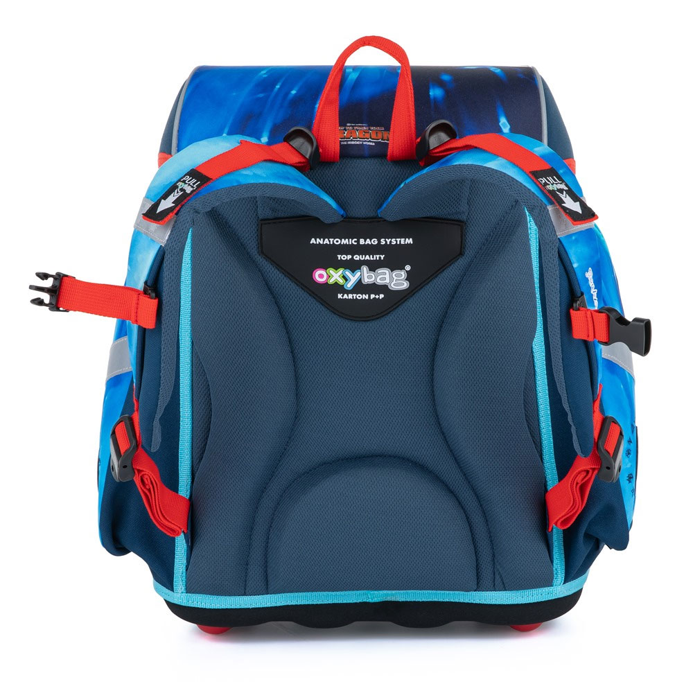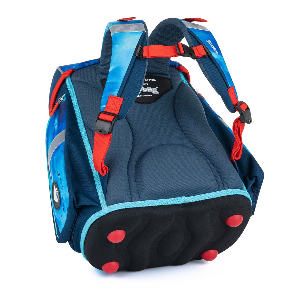 Aktovka: Školní aktovka z řady Premium s motivem auta je anatomicky tvarovaná a zajišťuje tak správné usazení na zádech. Vyztužená záda a vnitřní výztuha udržují stálý tvar batohu. Polstrování je z příjemného prodyšného materiálu, široké měkčené popruhy jsou navrženy tak, aby dokonale přilnuly a rovnoměrně zatížily ramena dítěte. Aktovka se skládá z jedné prostorné komory, kam se pohodlně vejdou všechny školní pomůcky pro děti v 1. a ve 2. třídě. Dno batohu je z pevného materiálu, chrání tím obsah před převržením a vysypáním. Zapínání je na bezpečnostní přezku. Přední kapsička je určena na svačinu, nechybí řada reflexních prvků, díky kterým je aktovka viditelnější.