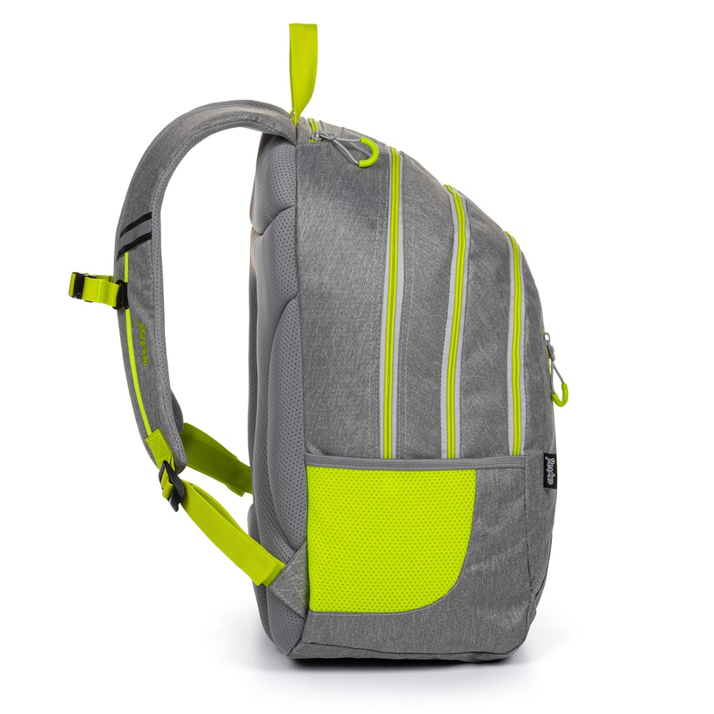 Student backpack Oxy Campus is suitable for high school students. It offers plenty of space in three chambers, complemented by practical small pockets for small items, side mesh pockets for drinking bottles. Adjustable padded shoulder straps and chest strap allow for a perfect fit. There is also an internal organizer and a 15 '' laptop pocket.