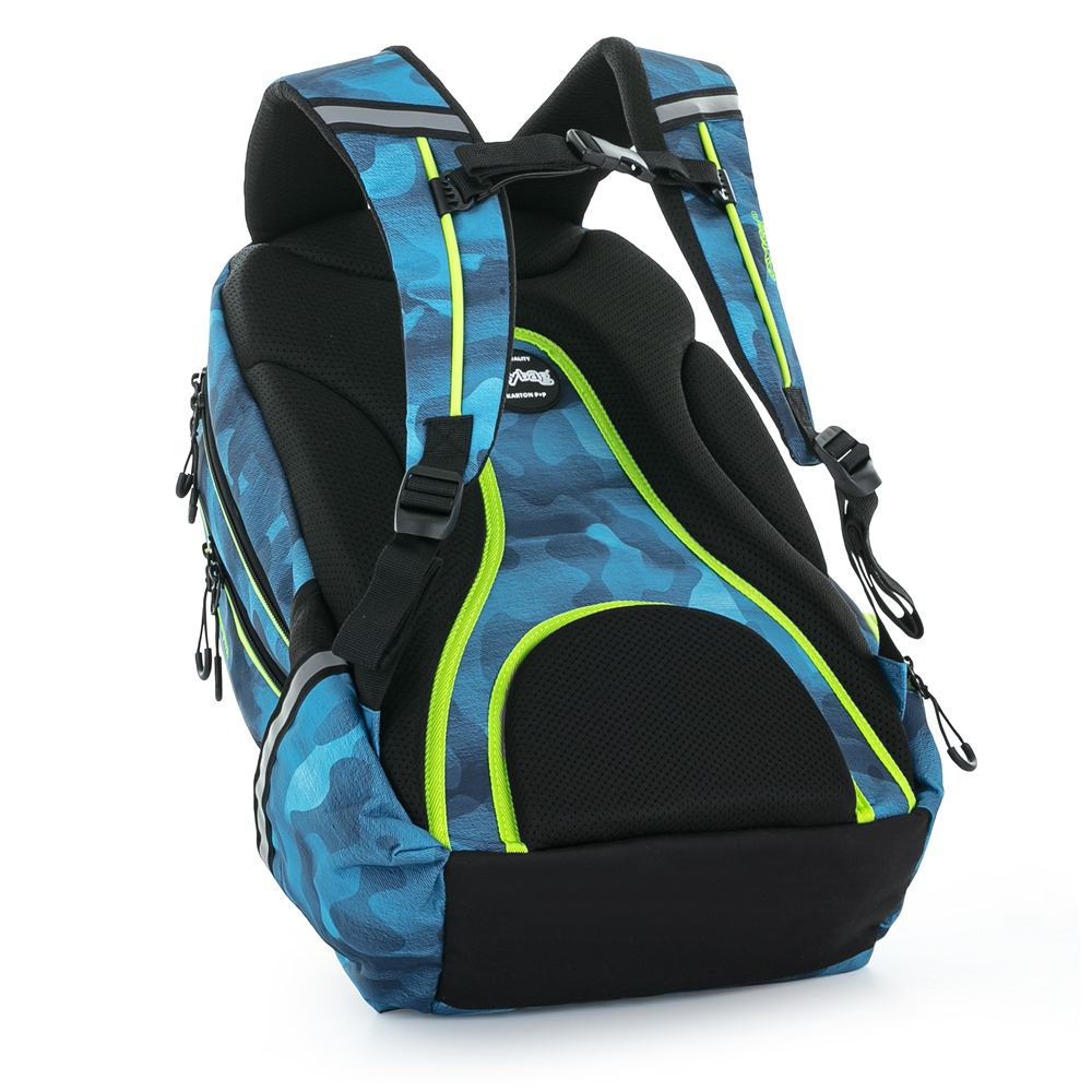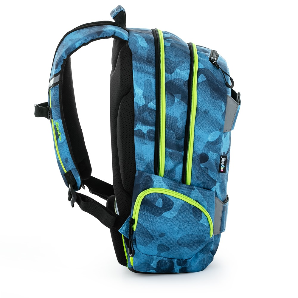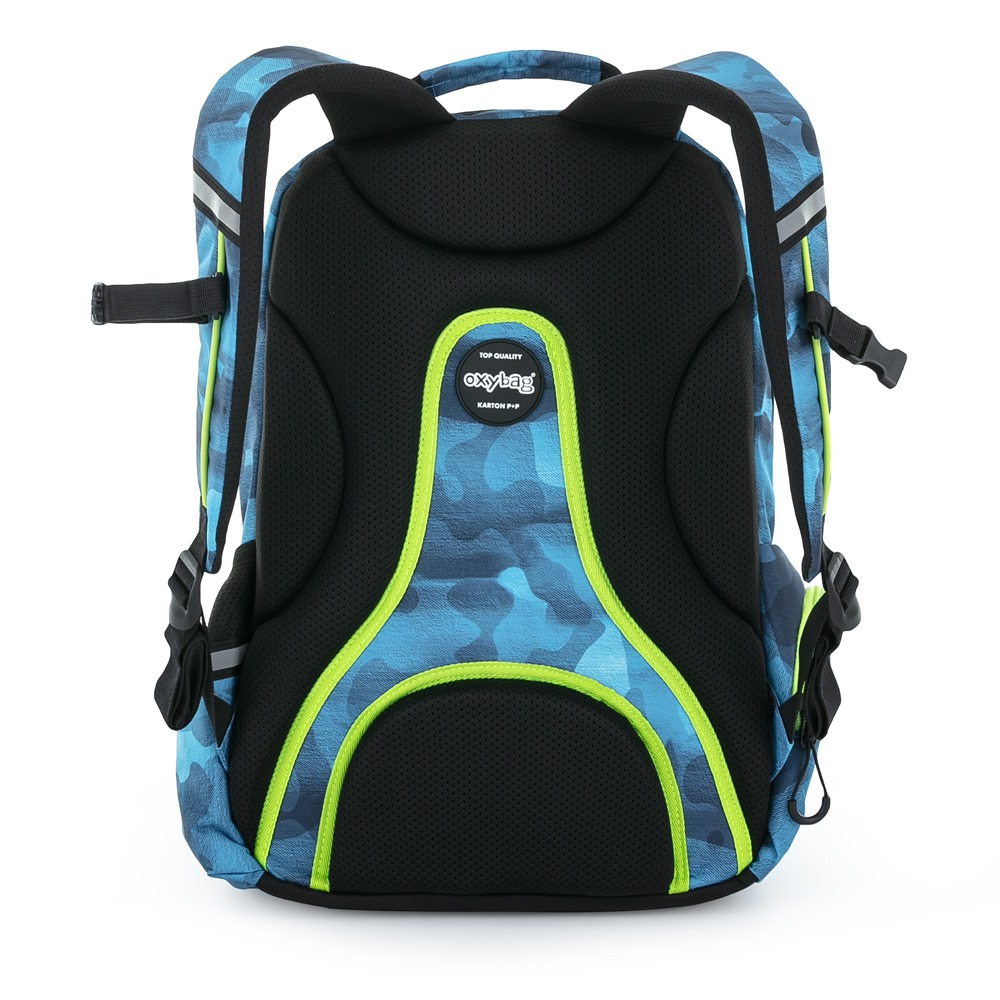 The OXY SPORT range of student and school backpacks features an ergonomically shaped back, adjustable padded shoulder straps and a chest strap for a comfortable fit. The backpack consists of two main compartments and one smaller front pocket with strong zips and practical loops. Inside the backpack is a reinforced laptop pocket, carabiner key, smaller pocket for small items. There is also a side pocket for a drinking bottle and a number of reflective elements that make the backpack more visible. The backpack is ideal both for secondary school children and for leisure time activities of students and adults.