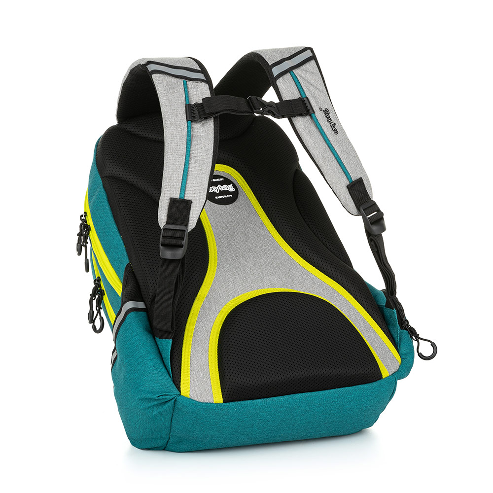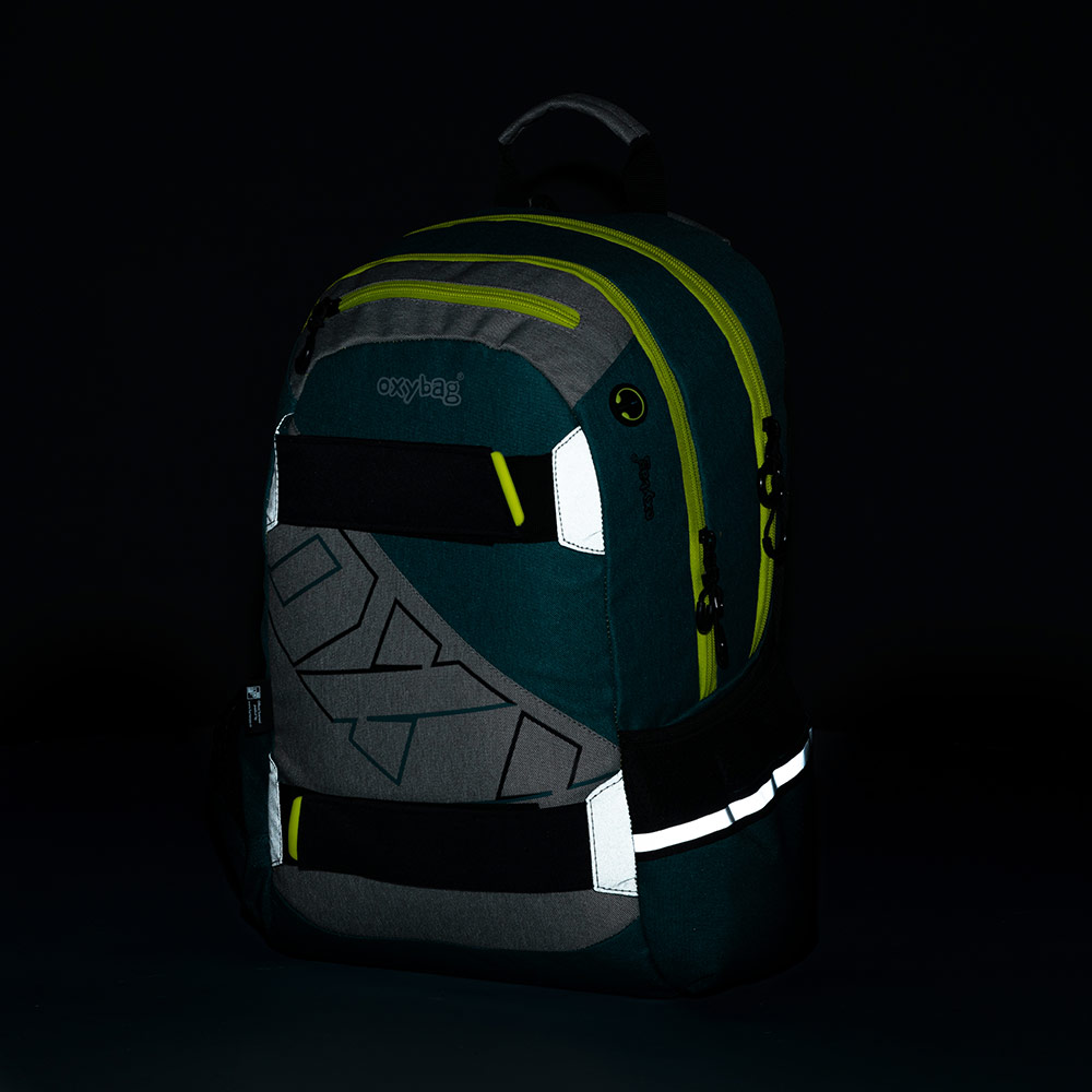 The OXY SPORT range of student and school backpacks features an ergonomically shaped back, adjustable padded shoulder straps and a chest strap for a comfortable fit. The backpack consists of two main compartments and one smaller front pocket with strong zips and practical loops. Inside the backpack is a reinforced laptop pocket, carabiner key, smaller pocket for small items. There is also a side pocket for a drinking bottle and a number of reflective elements that make the backpack more visible. The backpack is ideal both for secondary school children and for leisure time activities of students and adults.