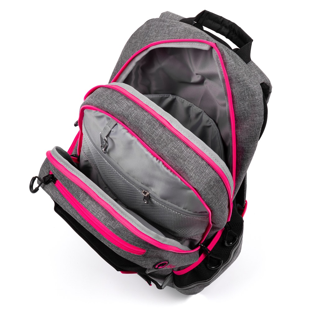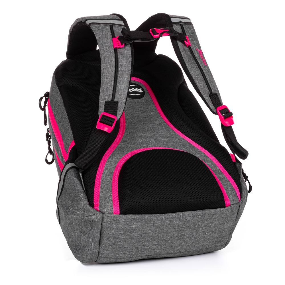 The OXY SPORT range of student and school backpacks features an ergonomically shaped back, adjustable padded shoulder straps and a chest strap for a comfortable fit. The backpack consists of two main compartments and one smaller front pocket with strong zips and practical loops. Inside the backpack is a reinforced laptop pocket, carabiner key, smaller pocket for small items. There is also a side pocket for a drinking bottle and a number of reflective elements that make the backpack more visible. The backpack is ideal both for secondary school children and for leisure time activities of students and adults.