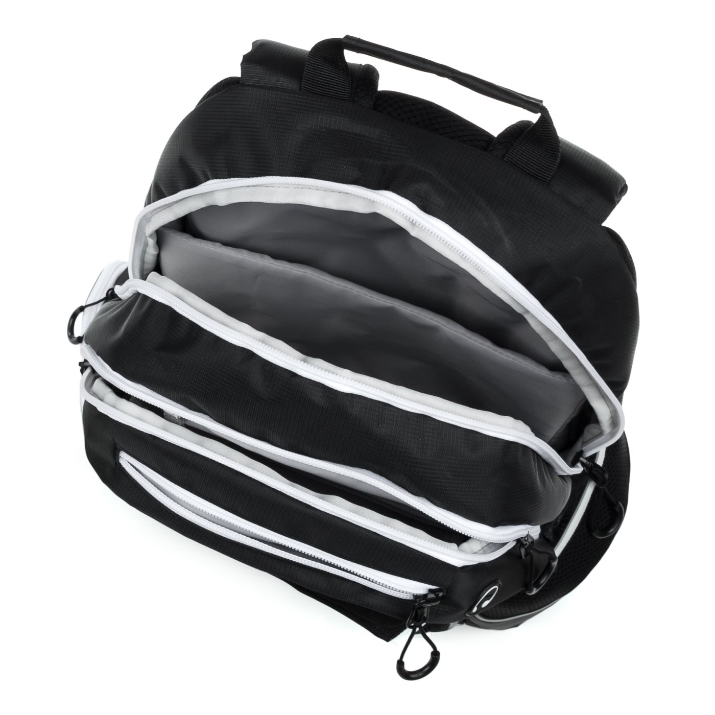 The OXY SPORT range of student and school backpacks features an ergonomically shaped back, adjustable padded shoulder straps and a chest strap for a comfortable fit. The backpack consists of two main compartments and one smaller front pocket with strong zips and practical loops. Inside the backpack is a reinforced laptop pocket, carabiner key, smaller pocket for small items. There is also a side pocket for a drinking bottle and a number of reflective elements that make the backpack more visible. The backpack is ideal both for secondary school children and for leisure time activities of students and adults.