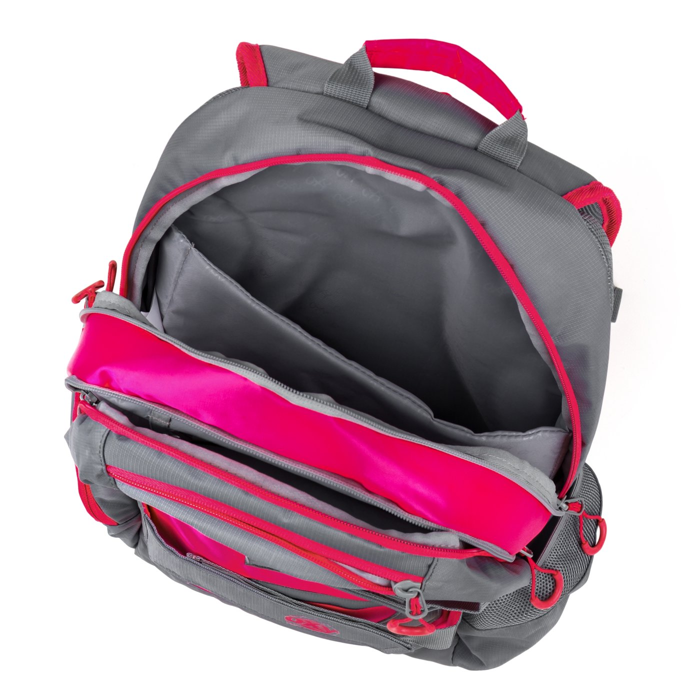 The OXY SPORT range of student and school backpacks features an ergonomically shaped back, adjustable padded shoulder straps and a chest strap for a comfortable fit. The backpack consists of two main compartments and one smaller front pocket with strong zips and practical loops. Inside the backpack is a reinforced laptop pocket, carabiner key, smaller pocket for small items. There is also a side pocket for a drinking bottle and a number of reflective elements that make the backpack more visible. The backpack is ideal both for secondary school children and for leisure time activities of students and adults.