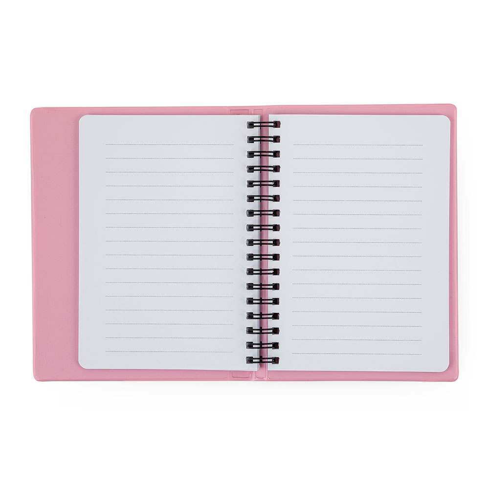 PVC Pastelini blok v moderních pastelových barvách. Formát A6 se skrytou spirálou a gumičkou. Obsahuje 60 linkovaných listů, gramáž listů 80g/m². Baleno po 5 ks.