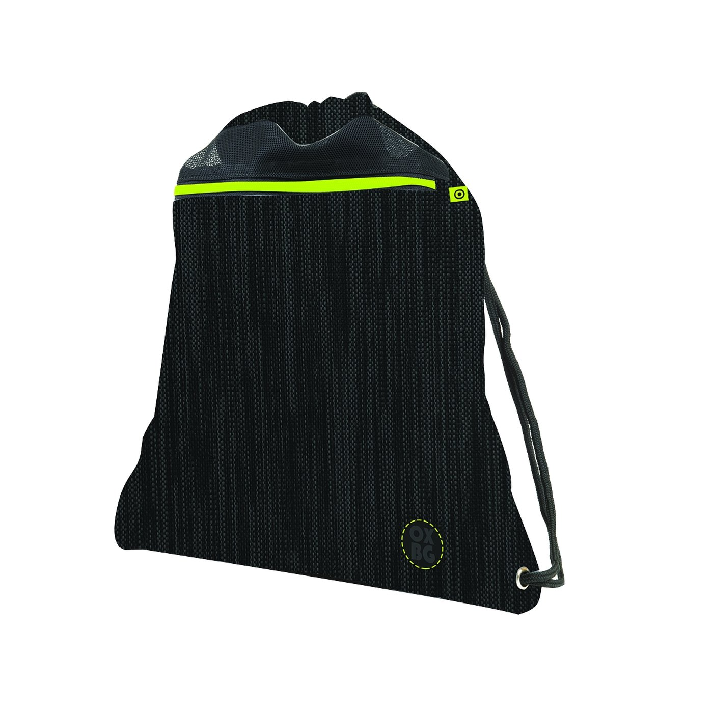 Sport sack for teenagers and adults in black design. The bag has a front zippered pocket, closes with a tight drawstring. Suitable for sports and casual wear.