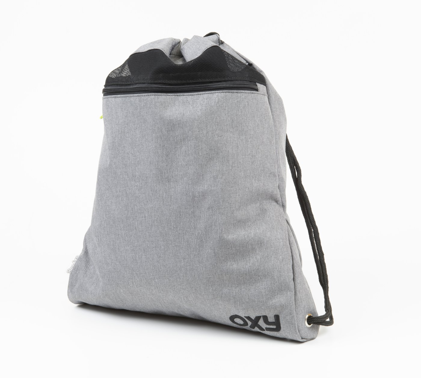 Sport sack for teenagers and adults in grey design. The bag has a front zippered pocket, closes with a tight drawstring. Suitable for sports and casual wear.